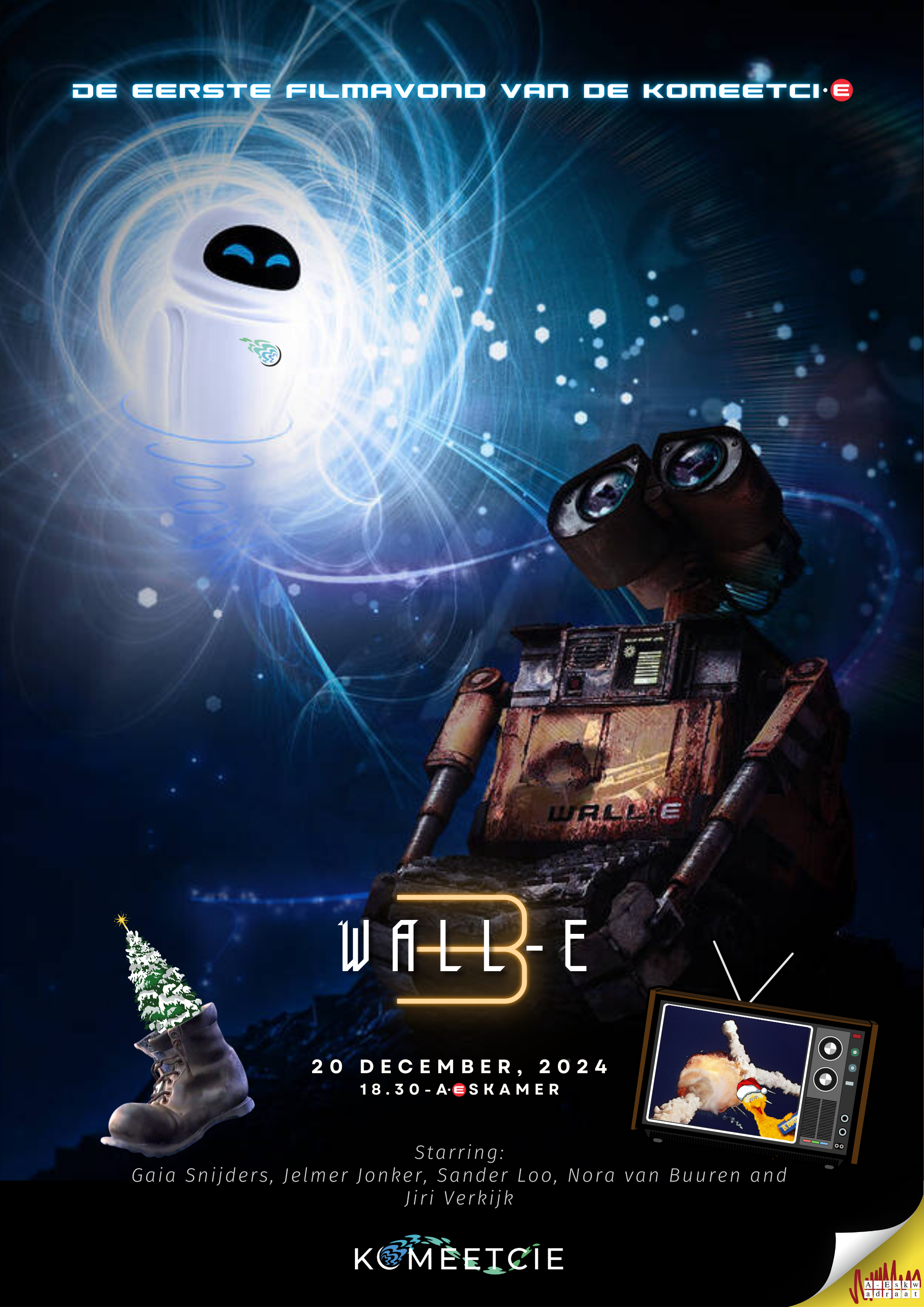 Eindelijk kerstvakantie! Maar wacht! Voordat je afscheid neemt van al je lieftallige studiegenoten is er op vrijdag 20 december nog de kans om in de gezelligheidskamer de kaskraker Wall-E te kijken.