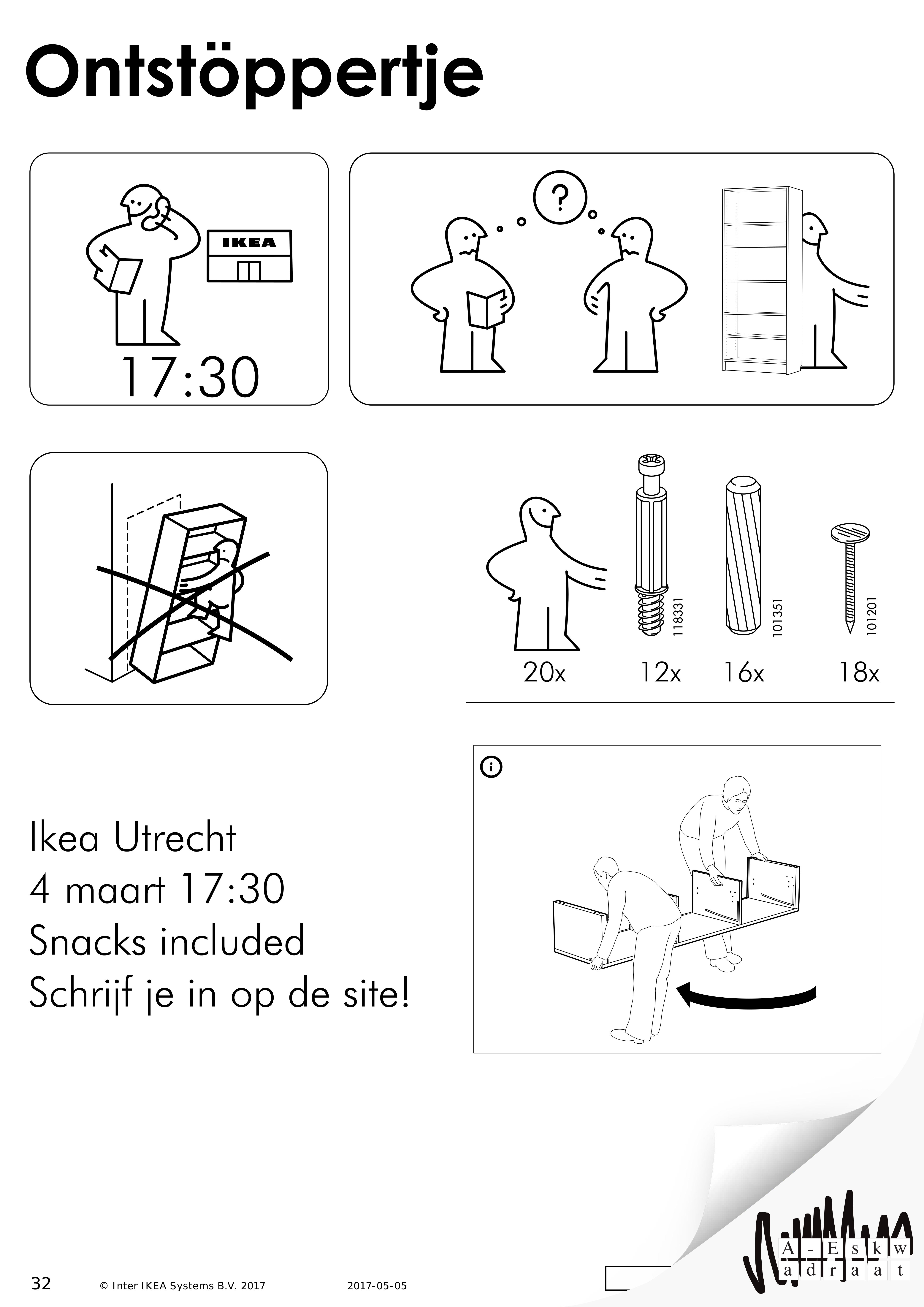 We vertrekken met de fiets rond 17:05 vanaf de Uithof richting de IKEA, of kom op eigen initatief.