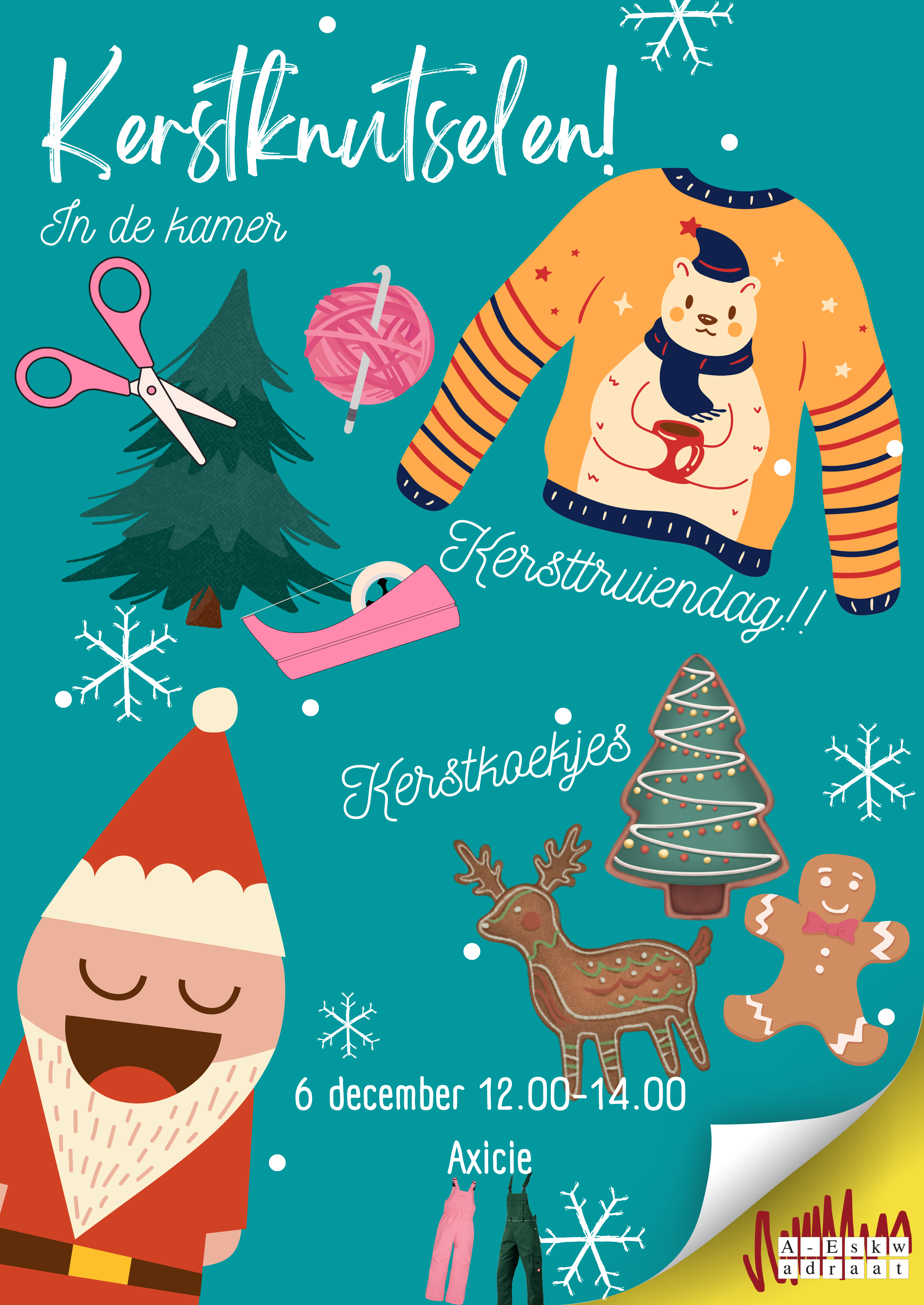 Hey hi dear members. Of course we have another fantastic activity planned! Sinterklaas will finally be gone again so we can have a Christmas party! Therefore, come to the room on December 6 between 12:00 and 14:00. We are going to make some nice Christmas crafts. Furthermore, it is very important that you see this as Christmas sweater day, so wear it! Ps. We arrange Christmas cookies