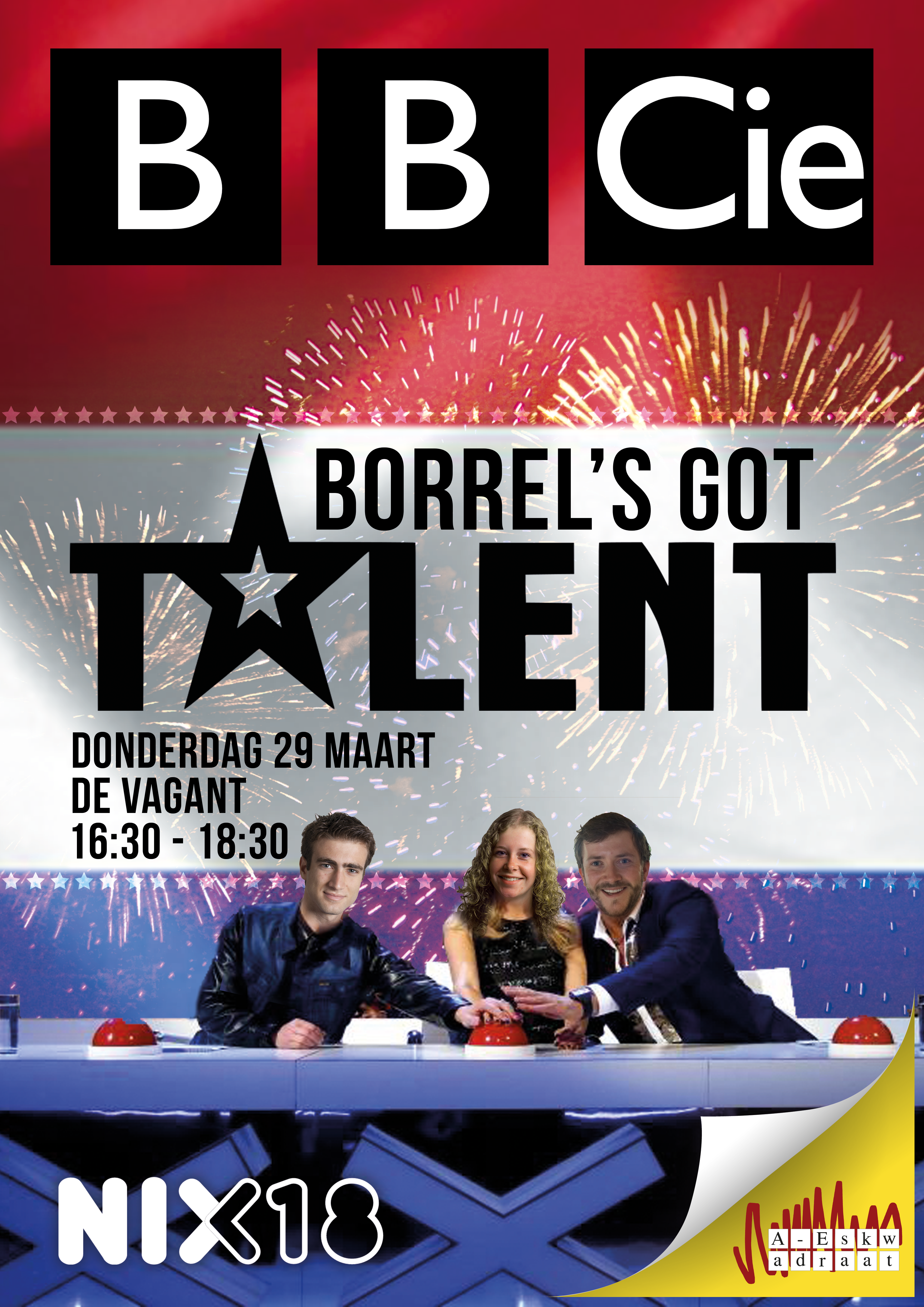 Leest iemand ooit deze beschrijvingen? Ik heb geen idee, maar ik vermaak me wel hier. Een borrel is een typisch Nederlands ding, vandaar dat wij ons als BBCie ons al bijna 25 jaar inzetten om A-Eskwadraat te voorzien van een biwekelijkse kwaliteits-activiteit. Gedurende die tijd hebben al meer dan 100 leden zich bewezen als waardige barmensen. Keer op keer laten wij jullie niet dorstig achter; een van onze talenten. Maar wat zijn jullie talenten, lieve borrelaars? Deze borrel gaan we op zoek naar de meest talentvolle A-Es2-er (naast alle BBCie leden, duh). Wij zullen een jury vormen als we veel zin hebben, en als we nog meer zin krijgen zijn er ook prijzen te winnen, maar doe ff normaal en verwacht niet te veel hé.