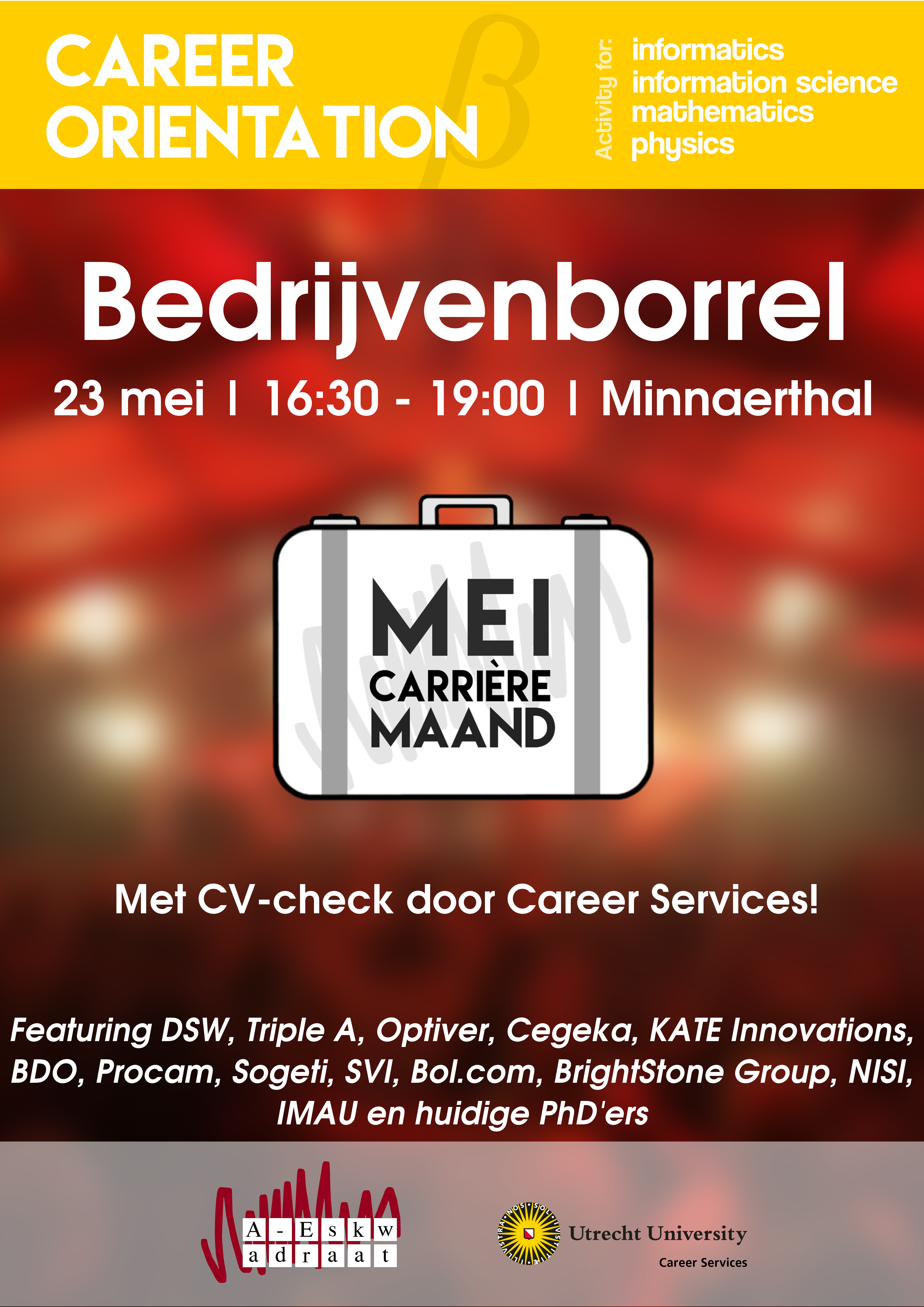 A lot of different companies will be in the Vagant. You can get to know them in a casual way while enjoying free drinks.