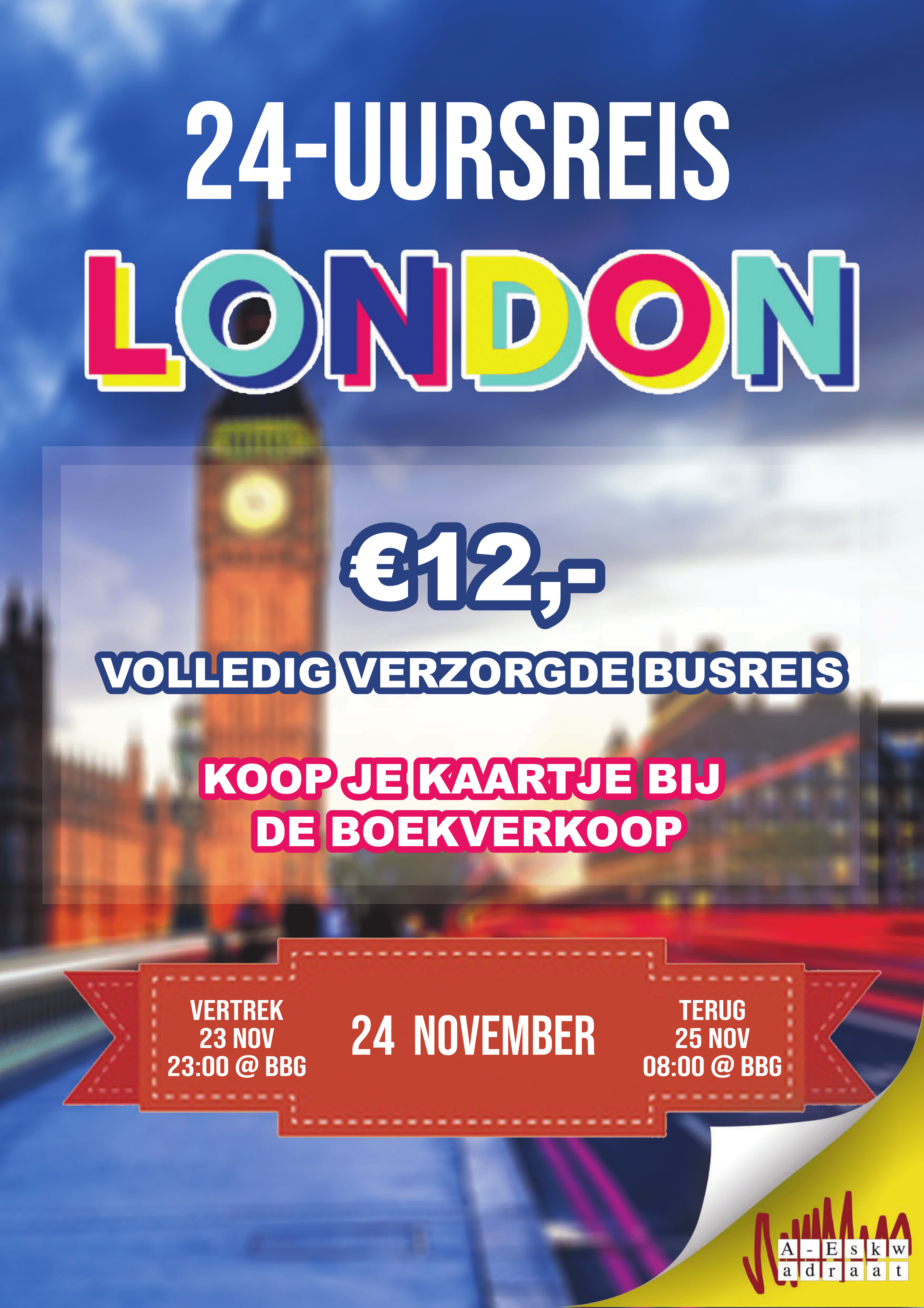 Jaaaa Londen! Voor maar €12 zullen we op vrijdag laat in de avond naar Londen vertrekken met de bus. Op zaterdagavond gaan we in de avond weer terug naar het mooie Utrecht. Je hebt dus een hele dag om in Londen rond te huppelen!
