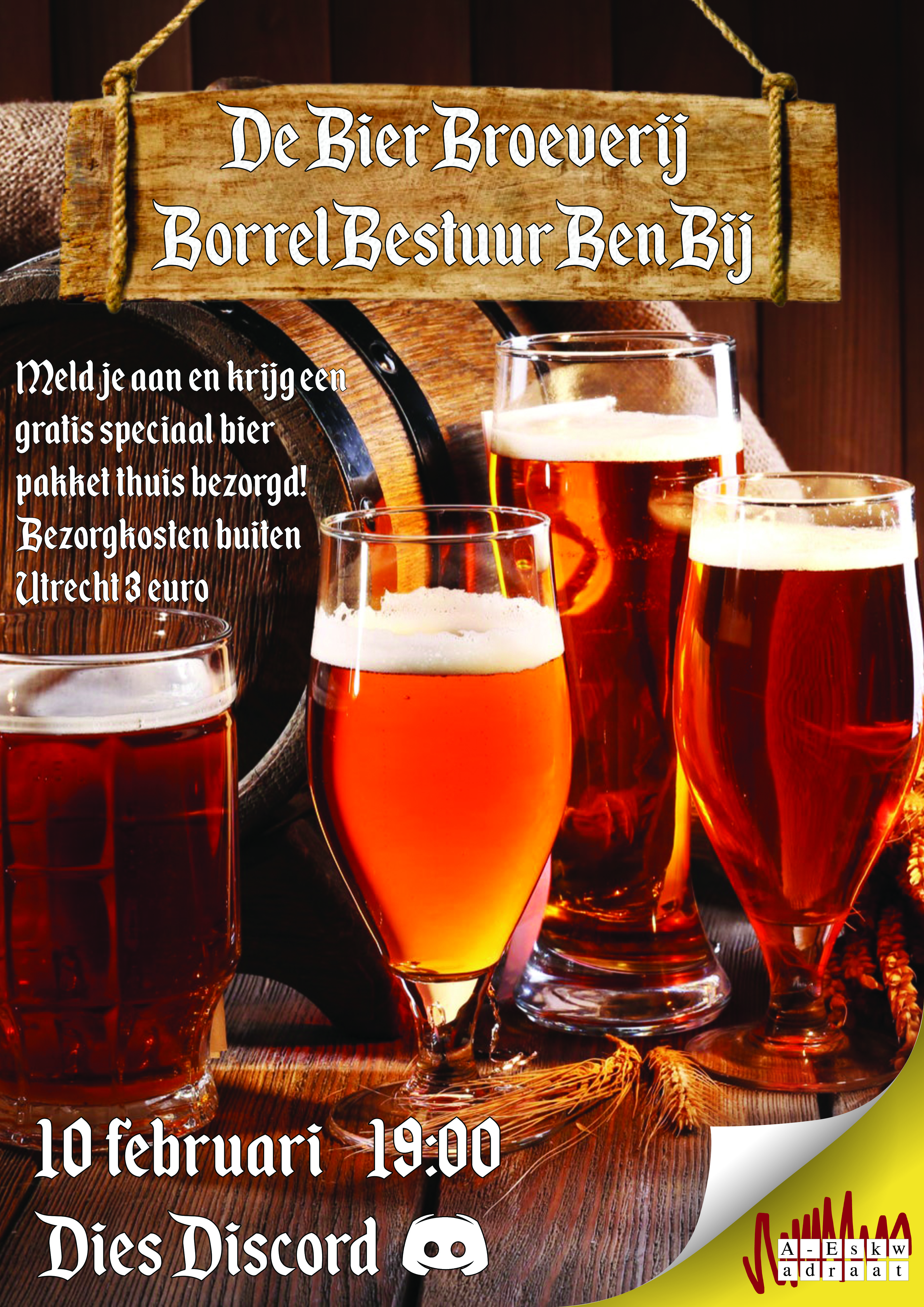 Kom gezellig speciaal biertjes proeven met ben bij! Als je je inschrijft komen wij hoogspersoonlijk een gratis speciaalbier pakket langsbrengen, of als je buiten Utrecht woont sturen wij die op voor drie euro. Dan gaan we die lekker in de dies discord opdrinken onder het genot van een paar spelletjes! Dus schrijf je in, en zorg dat je adres op de site up to date is, of stuur een mailtje naar [email protected] als je je pakket ergens anders wilt laten bezorgen. Schrijf je snel in want er zijn maar een beperkt aantal plekken, en de inschrijvingen sluiten een week van tevoren!