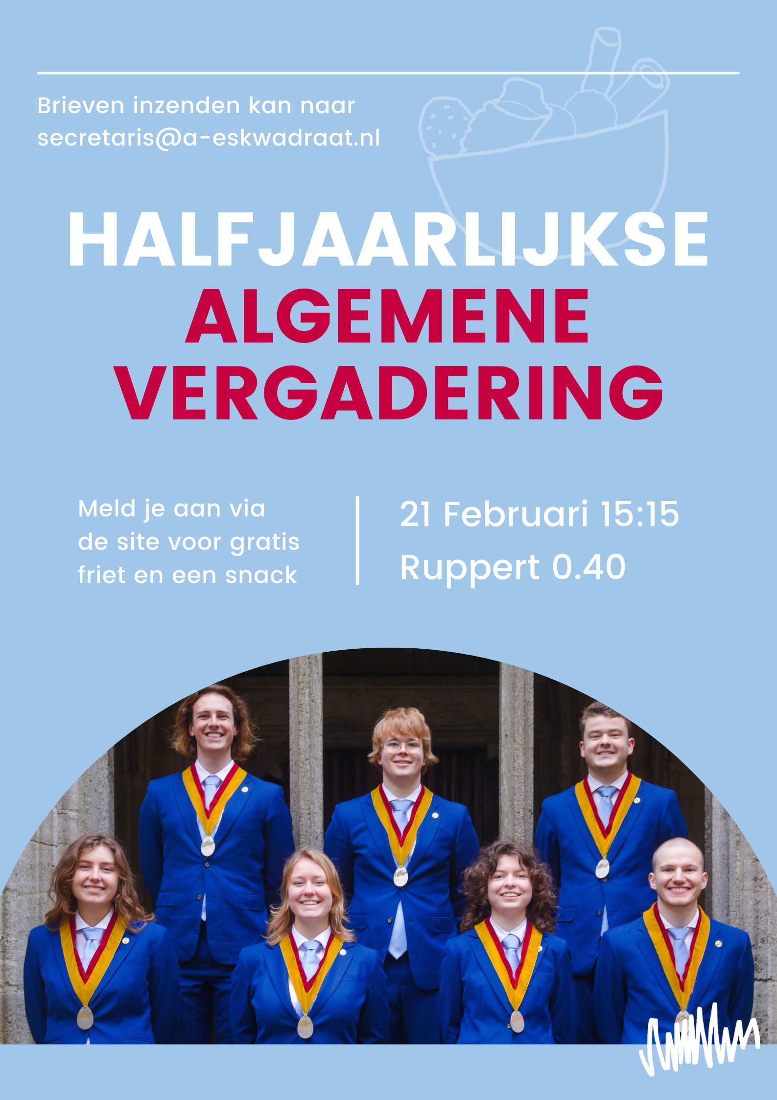 De vergadering wordt om 15:30 uur geopend in Ruppert 0.40. Het AV-uitlegkwartiertje zal om 15:15 beginnen.