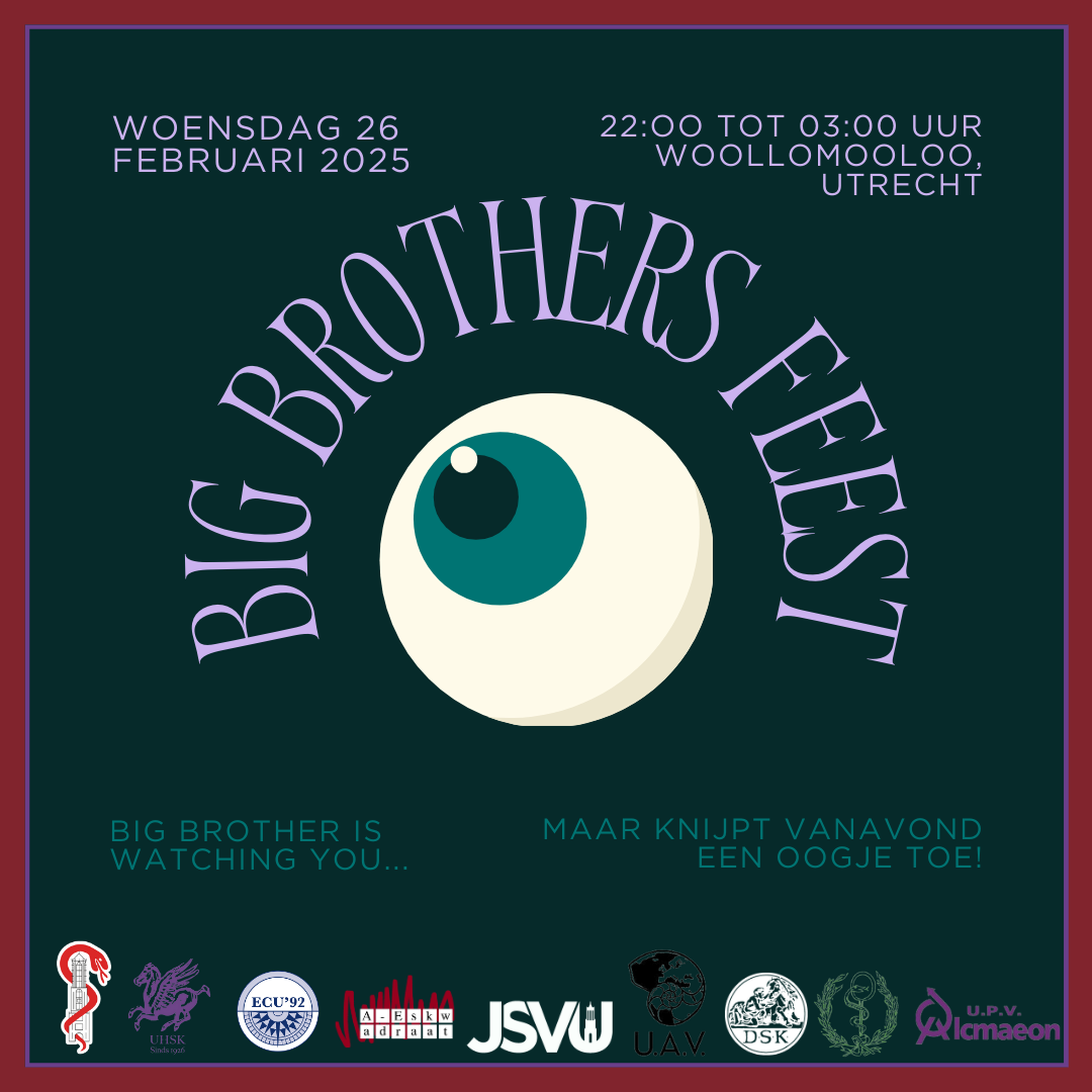 Samen met negen andere studieverenigingen vormt A–Eskwadraat de Big Brothers, de tien grootste studieverenigingen van Utrecht. Op woensdag 26 februari schrijven we geschiedenis met het allereerste Big Brothers-feest ooit! Een feest waar het draait om onderlinge gezelligheid, verenigingsverbondenheid en waar zien en gezien worden uiteraard centraal staat.