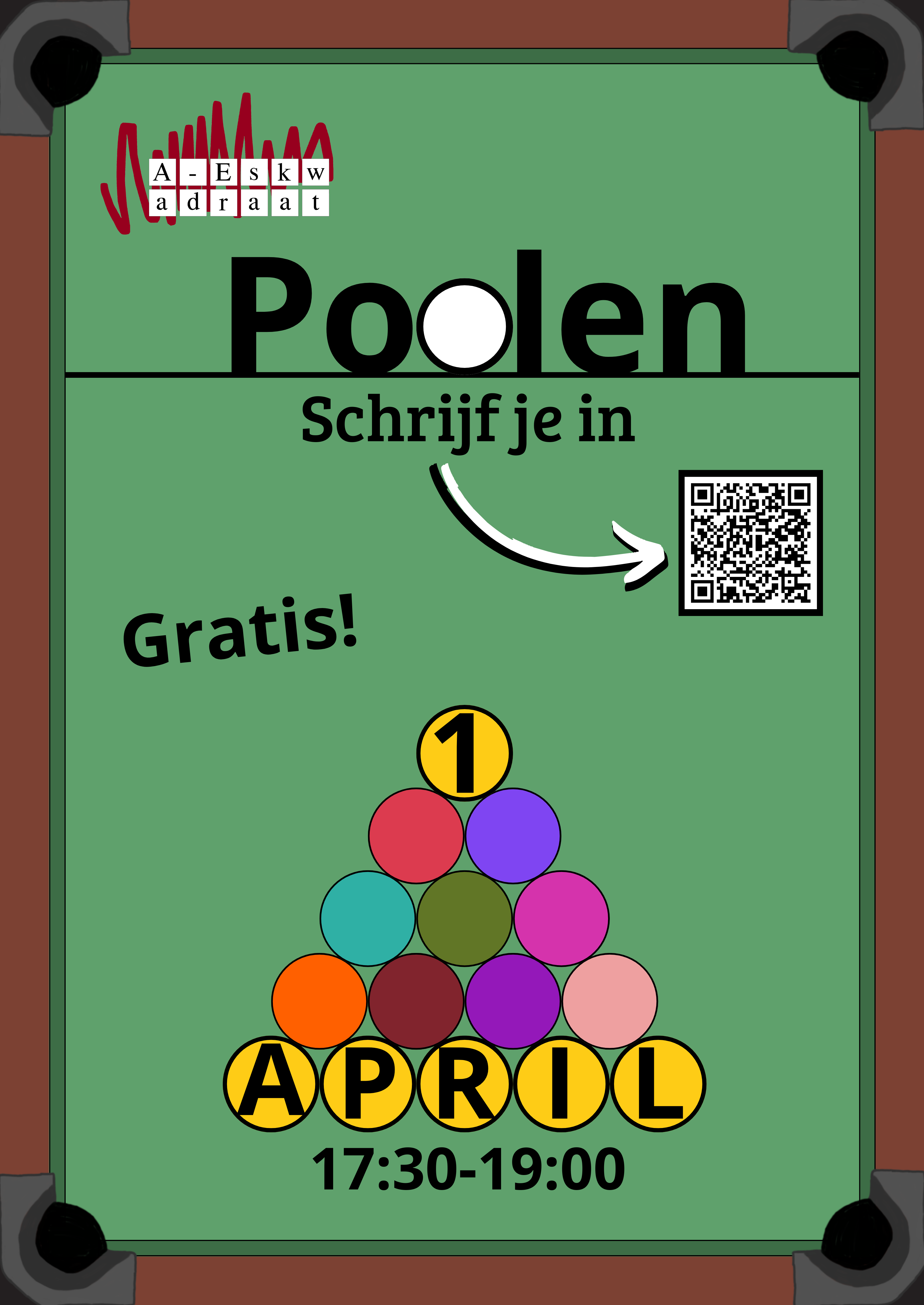 Are you also tired of your exams and fed up with all the renovations? Then join us for a game of pool at Ozebi on Tuesday, April 1st, from 5:30 to 7:00 PM! Catch up with members you haven’t seen as often due to the renovations, or focus entirely on winning the game. The best news? The activity is completely free! So what’s stopping you? Sign up now!