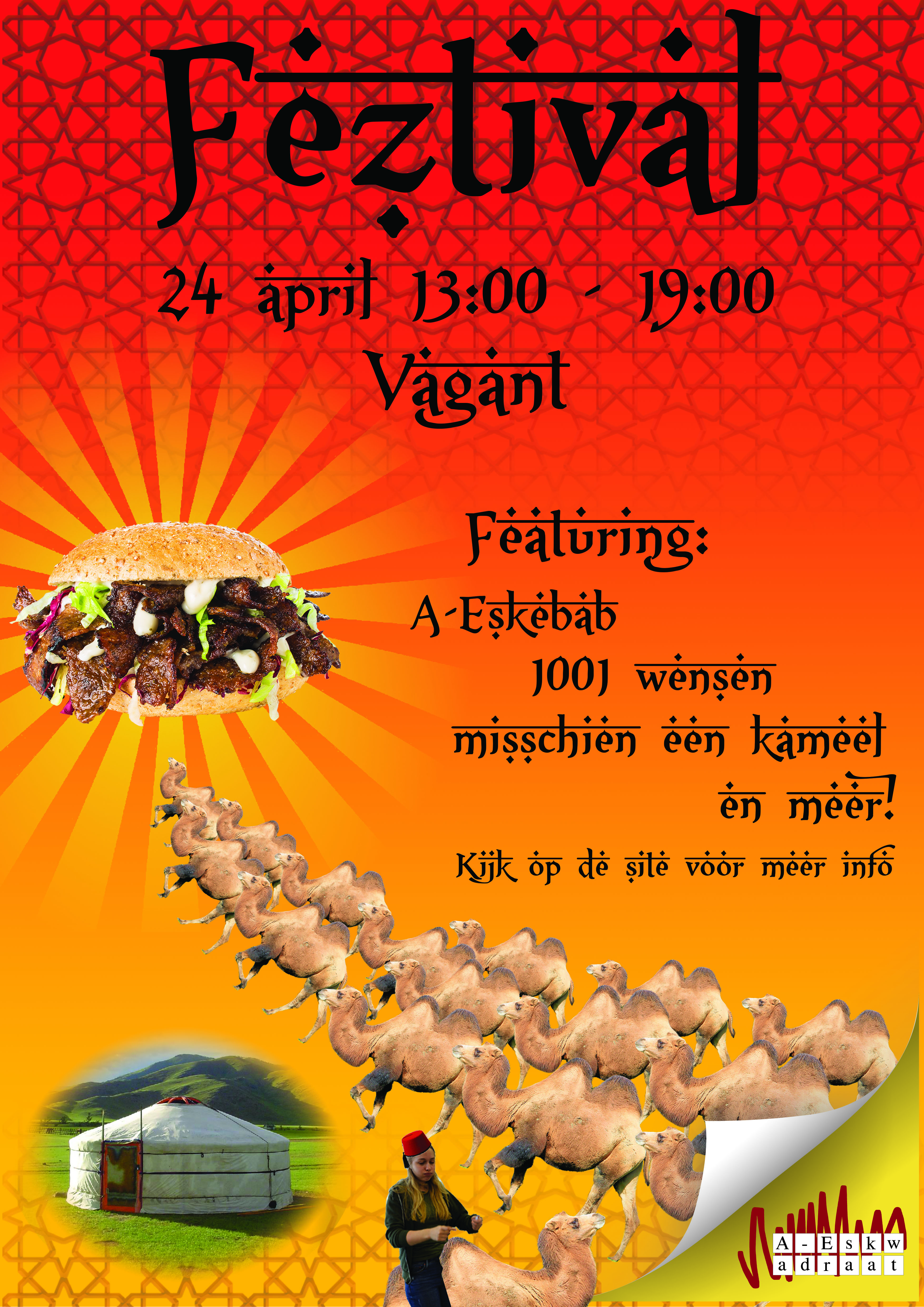 Ook zal er A-Eskebab zijn! Voor €1,50 kun je een broodje kebab of falafel halen en oppeuzelen.