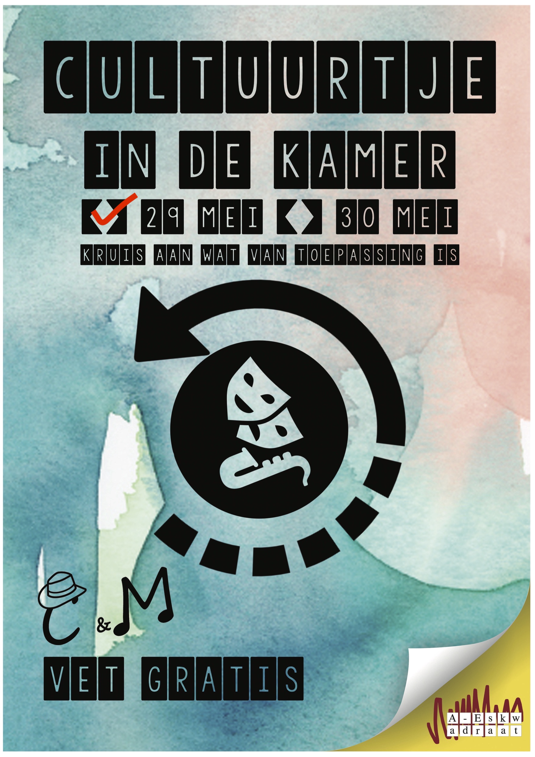 Na het grote succes van DIesY presenteert de C&M nu: het CultUURtje! Kom gezellig in de kamer ouderwets knutselen. Gewoon leuk. Tot dan!