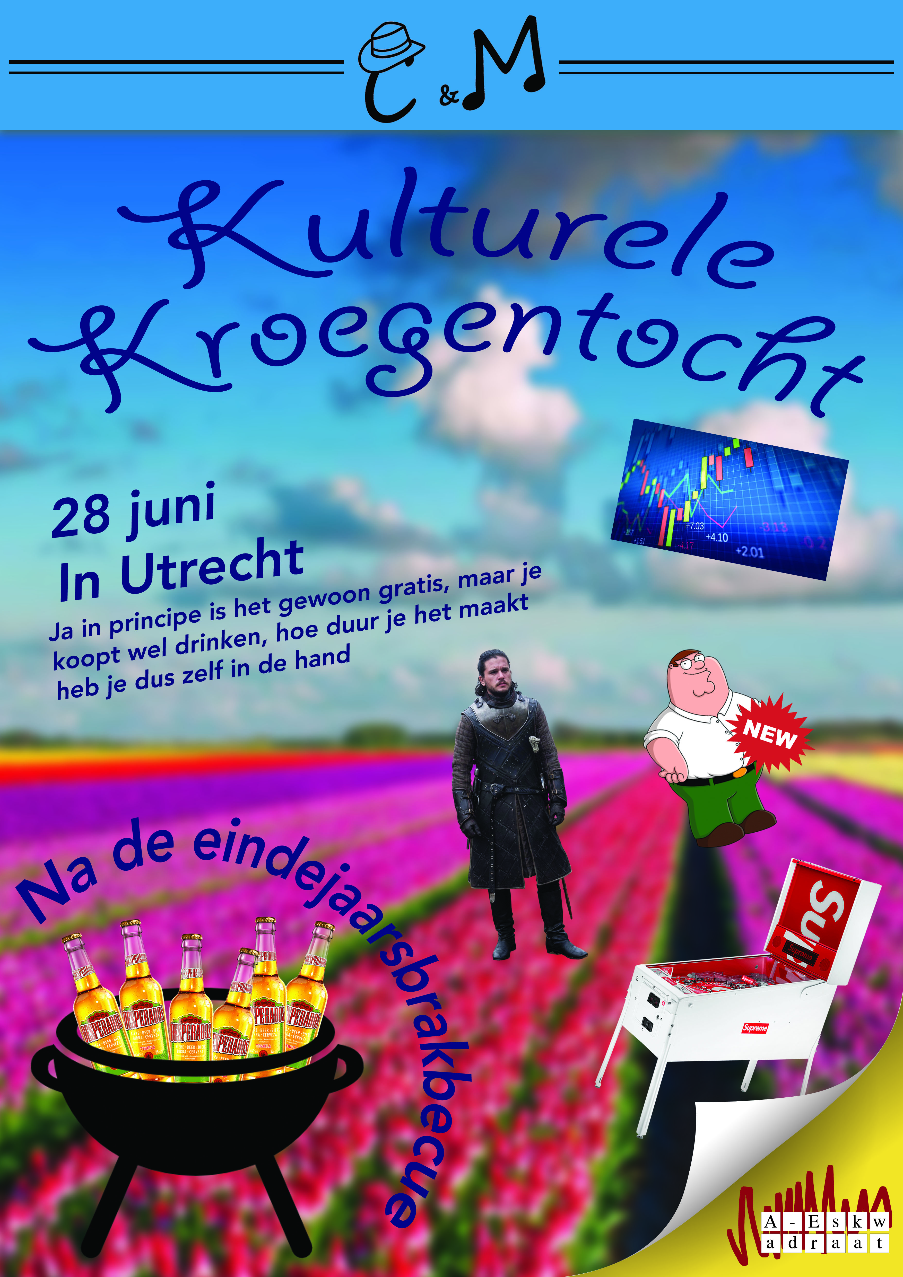 Het academisch jaar komt weer ten einde, en wat is een betere manier om dit af te sluiten dan door na de eindejaarsbrakbecue door te rollen naar de Kulturele Kroegentocht? Precies, wij kunnen ook niets bedenken.