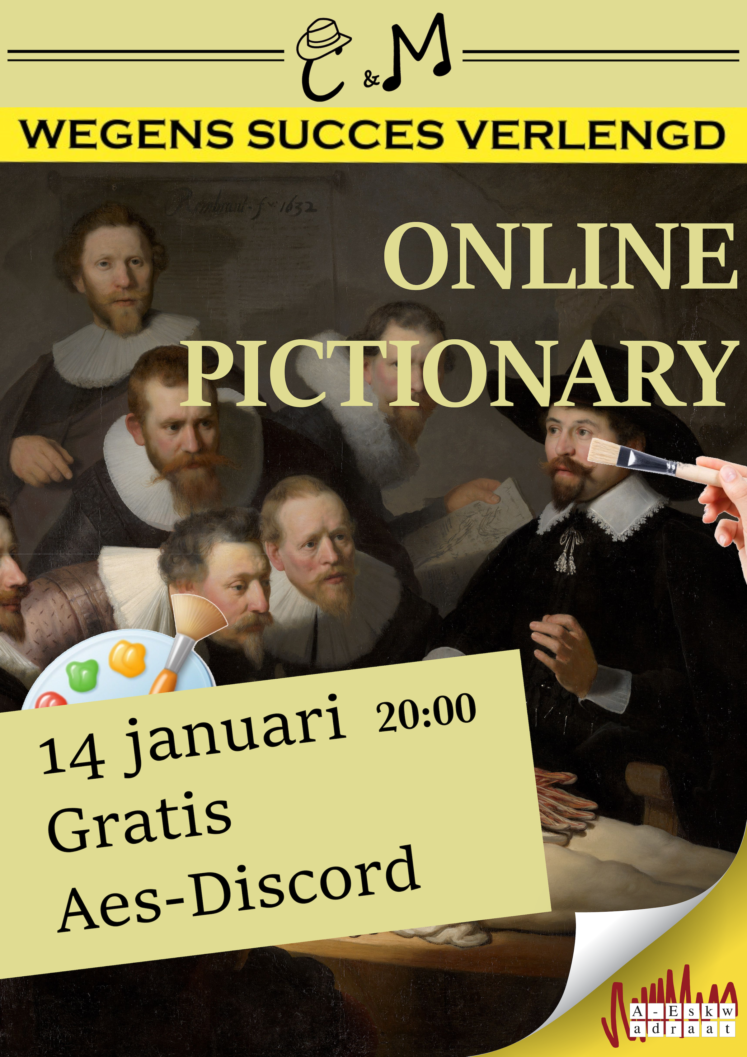 Teken en raad de beroemdste schilderijen in deze Online Pictionary. Het vind plaats op 14 januari via de Aeskwadraat Discord en het begint om 20:00.