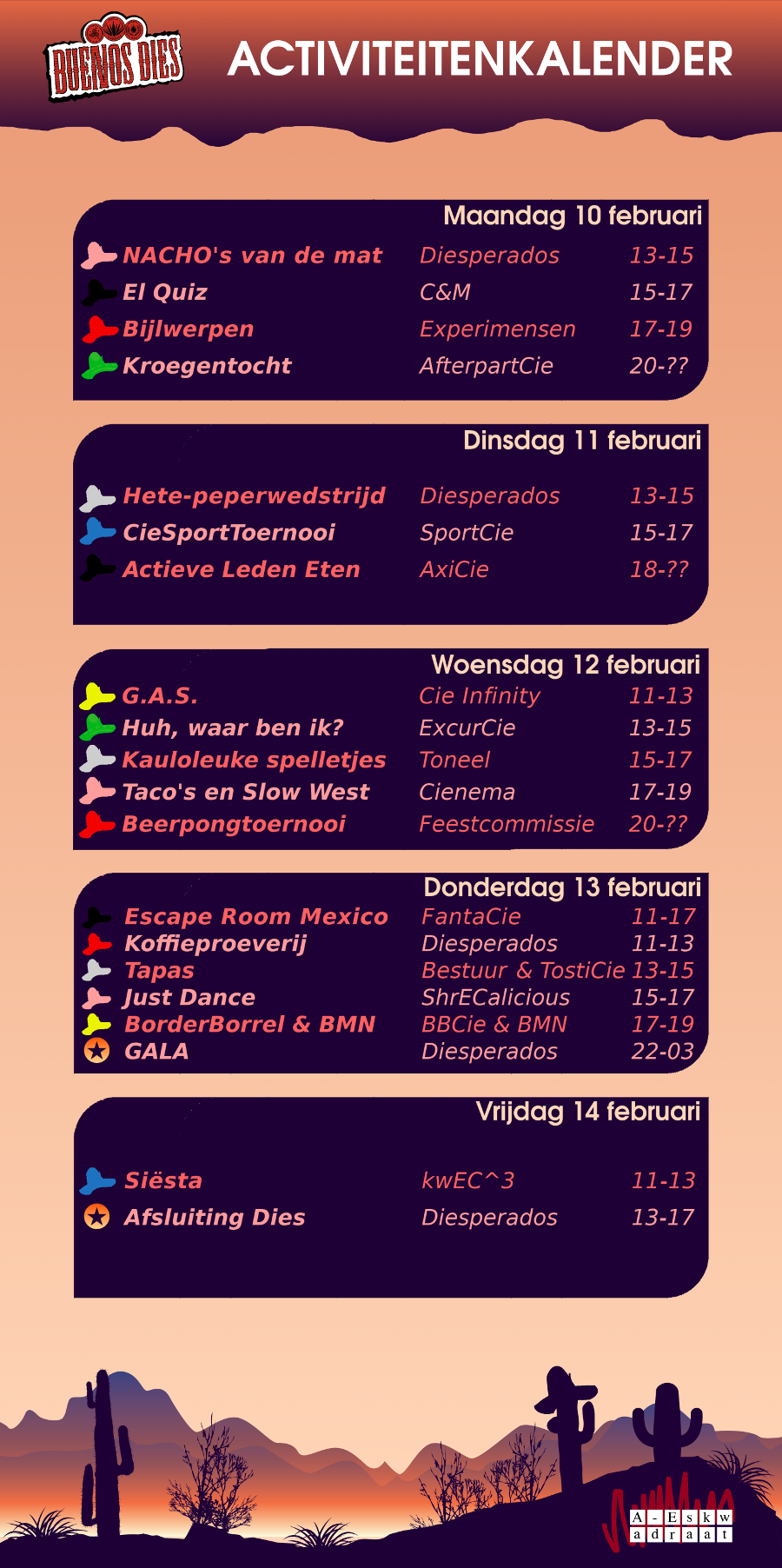 De Dies is de verjaardag de studievereniging. Op 10 februari 2020 wordt A–Eskwadraat 49 jaar! 🎉 Dat vieren we door in de week van 10 t/m 14 februari allerlei activiteiten te organiseren. Bij zijn is meemaken! Het gala zal op donderdag 13 februari zijn, dus dat kun je alvast in je agenda zetten! 🥑
