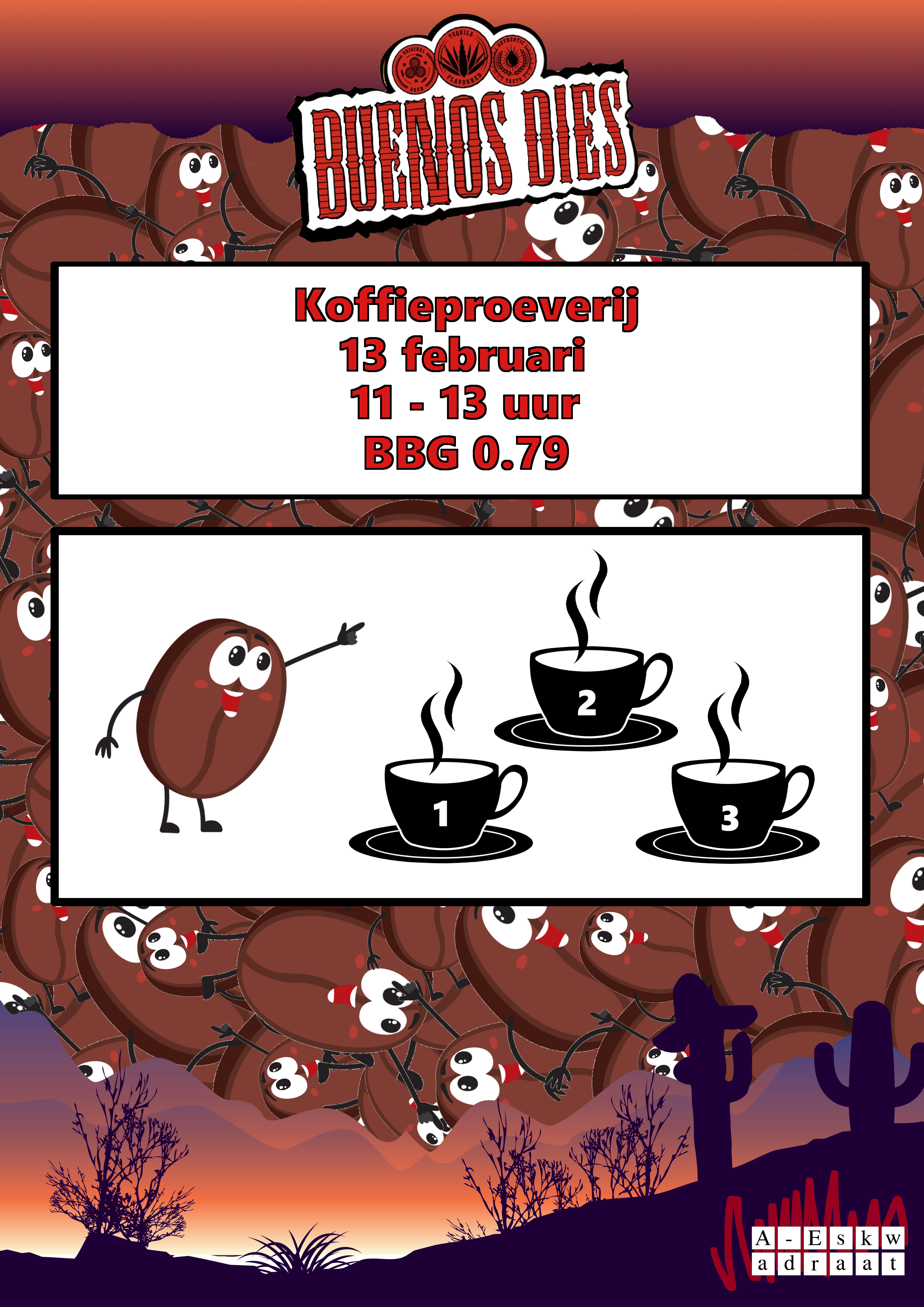 Ben je een beetje brak van het beerpong toernooi en heb je nieuwe energie nodig voor weer een lange dag? Kom naar deze informele koffie proeverij! Er zullen (natuurlijk) verschillende soorten koffie zijn die je onder het genot van een koekje en een babbeltje kan proeven.