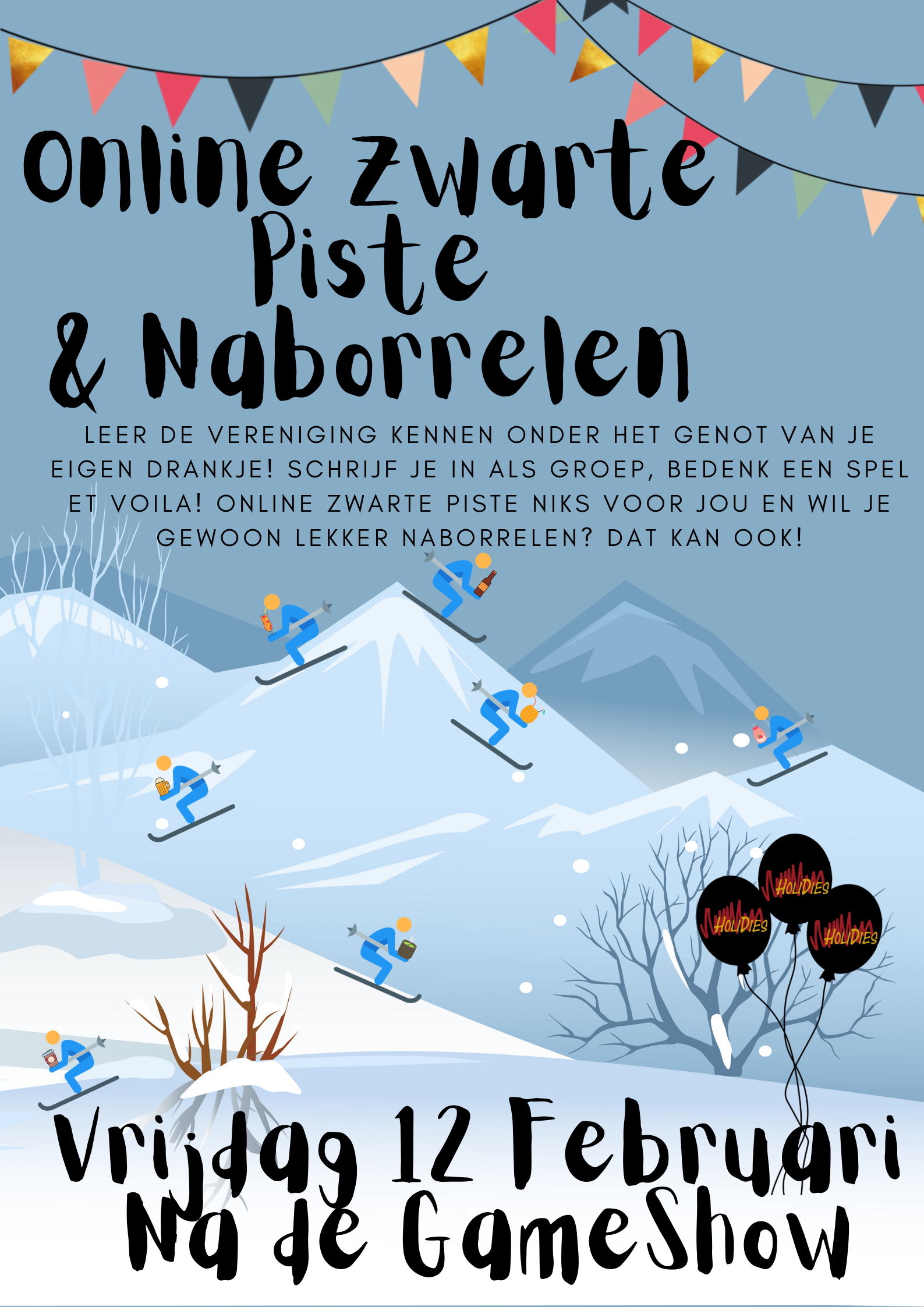 Aansluitend op de GameShow zal er een Online Zwarte Piste plaatsvinden. De inloop op alvast voor te borrel is vanaf 9 uur, maar in verband met de GameShow beginnen de rond om half 10! Heb je hier geen zin in een Zwarte Piste? Kom dan lekker naborrelen in de Discord!