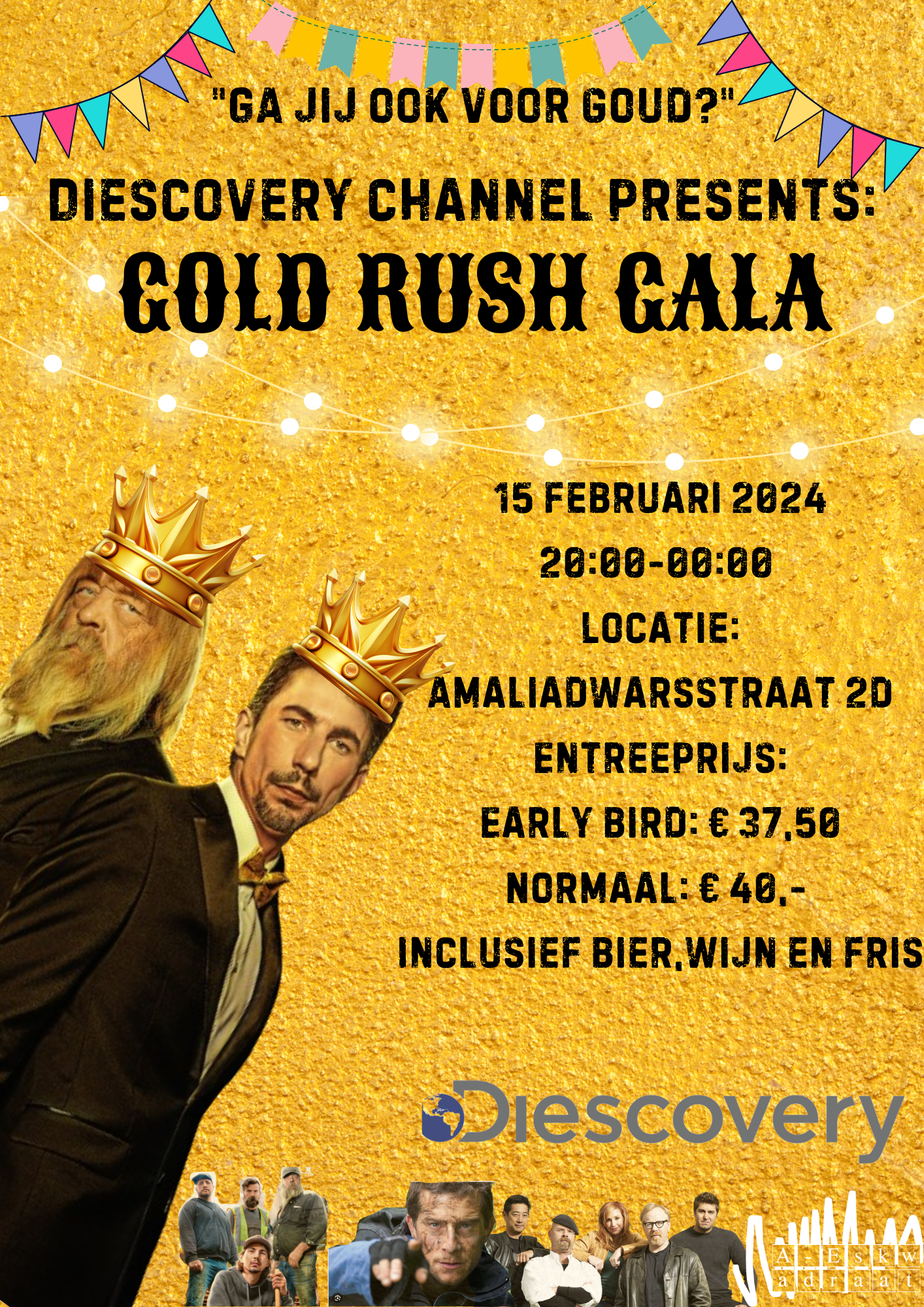 Jaja mensen, op donderdag 15 februari is het dan eindelijk zover, het hoogtepunt van de Dies, het Gold Rush Gala van de Diescovery onder de zinspreuk: “Ga jij ook voor goud?”