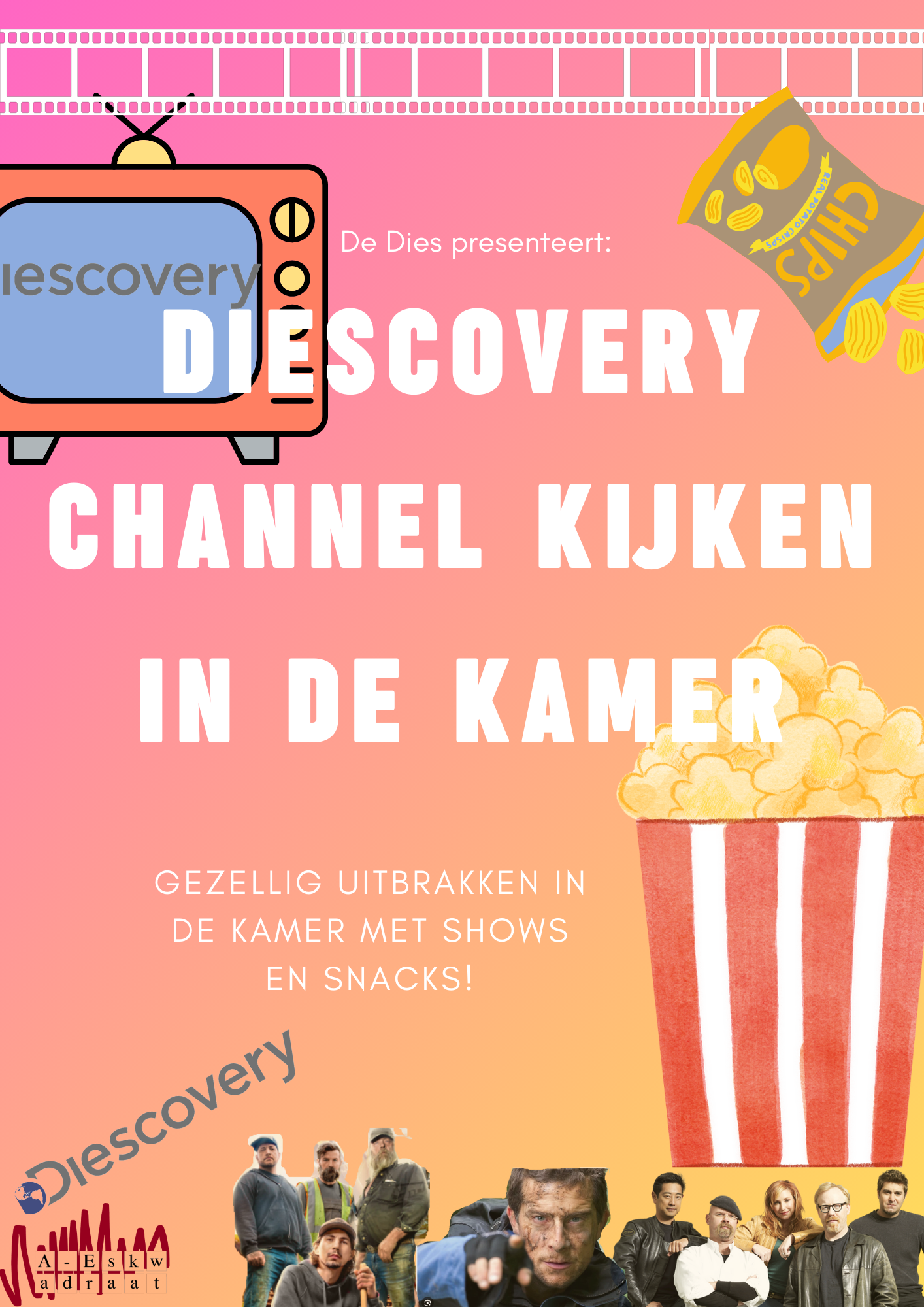 Beetje te hard gegaan bij het gala gisteren? Kom dan gezellig uitbrakken in de A-Es kamer met Diescovery Channel. Ook als je je gewoon heerlijk voelt op deze vrijdagochtend mag je langskomen natuurlijk!