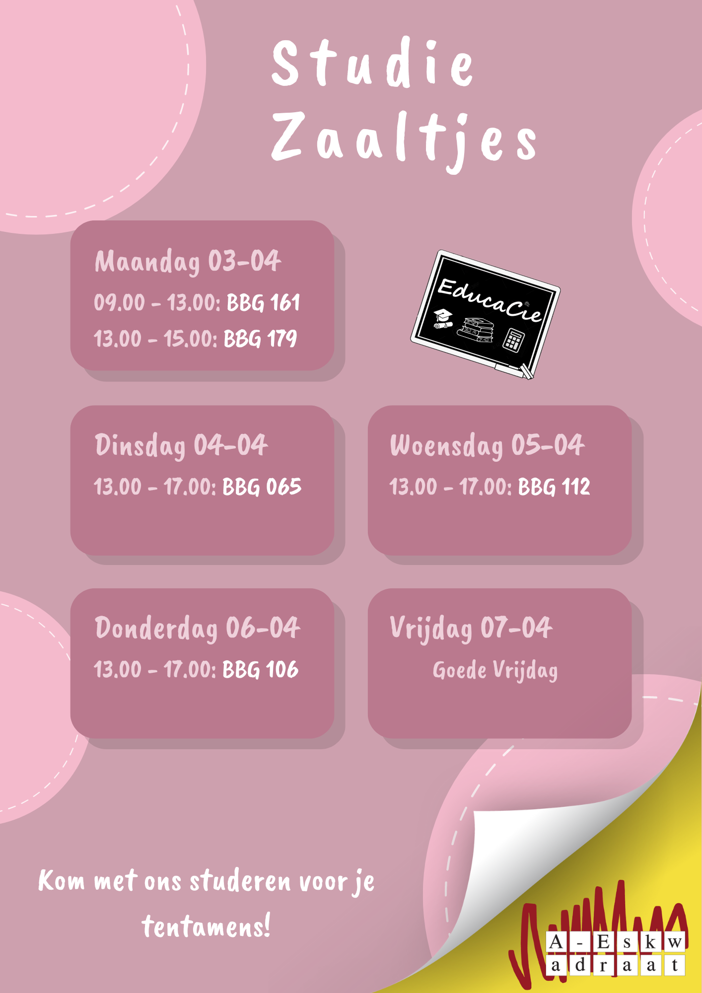 Deze week hebben wij een lokaal gereserveerd waar jij kunt leren voor je tentamens!