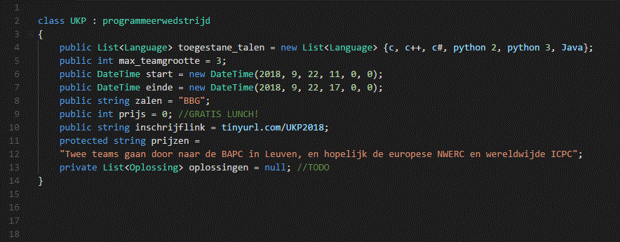 Zowel het UKP, het BAPC en het NWERC zijn programmeerwedstrijden. Een programmeerwedstrijd is, zoals het woord al zegt, een wedstrijd in programmeren. In teams van twee of drie personen moeten in een bepaalde tijd (meestal vijf uur) zoveel mogelijk programmeeropgaven afgewerkt worden. Hierbij ligt de nadruk op het bedenken van slimme oplossingen en algoritmen. Zie hier voor meer informatie. Schrijf je hier in!