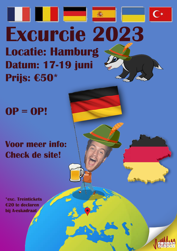 Ook dit jaar organiseert A-Eskwadraat een excursie naar het buitenland. Een weekendje weg naar een andere stad om die eens goed te verkennen. Dit jaar gaan we naar Hamburg!!!