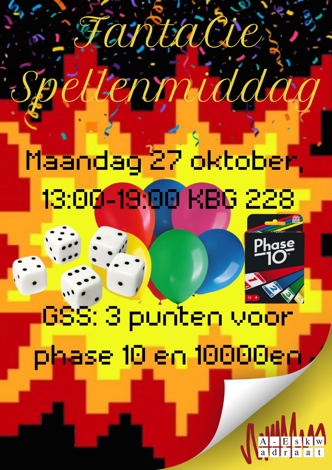Het is weer tijd voor een spellenmiddag. Dit keer wel een heel bijzondere spellenmiddag. De 10000ste activiteit op de a-es website🎉🎉 Daarom krijg je voor 10000en en phase 10 beide 3 gss punten. Je kan natuurlijk ook andere spellen spelen.