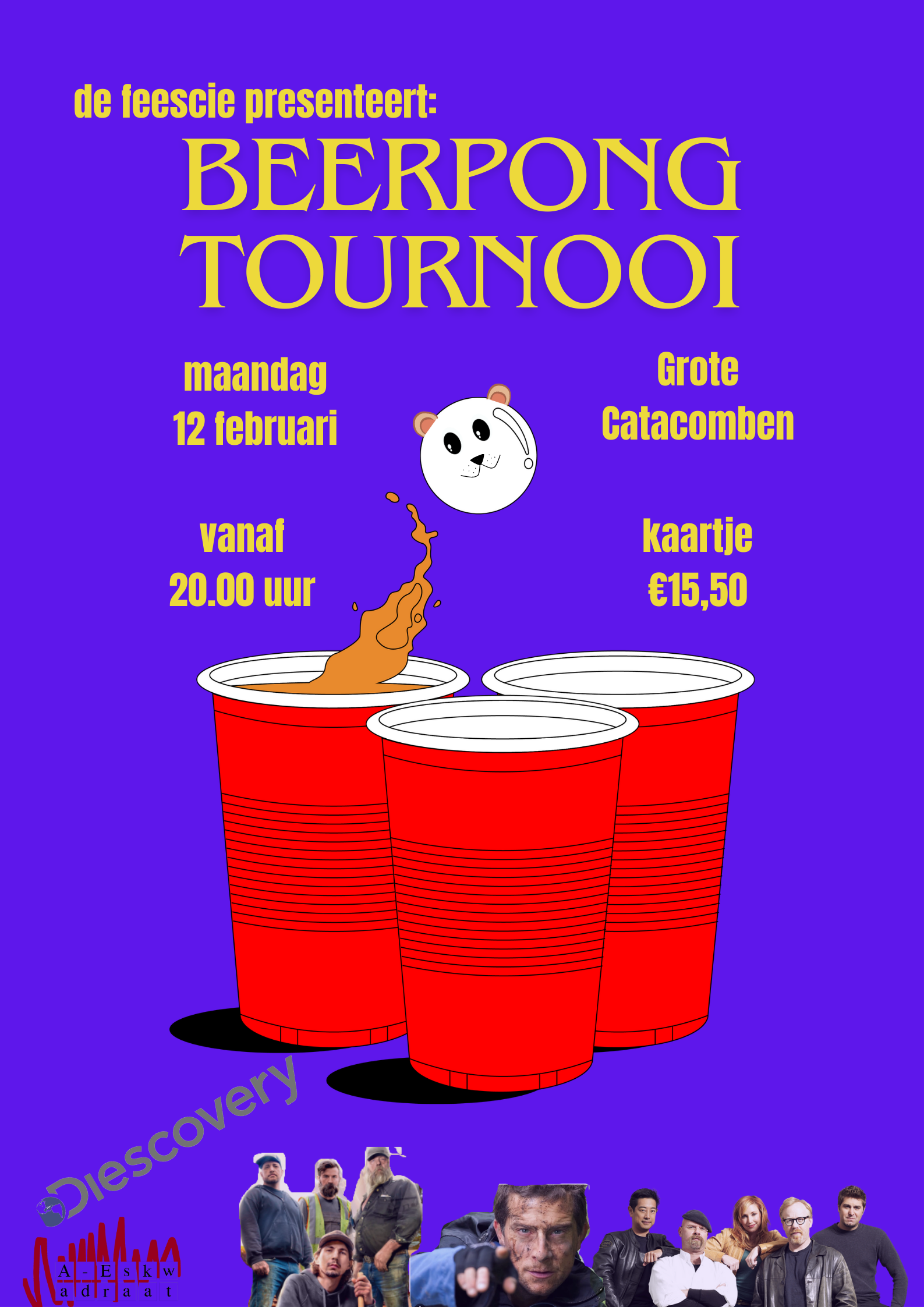 Het is weer bijna tijd voor het Dies Beerpong Toernooi!🏓 Ben jij competitief, hou je van gezelligheid en gooi je af en toe wel eens een balletje raak(optioneel)? Dan is dit dé maandagavondactiviteit voor jou! Kom gezellig met je A--es vrienden vieren dat jullie weer een blok overleefd hebben!🎉🪩 Je speelt in een team van twee personen.