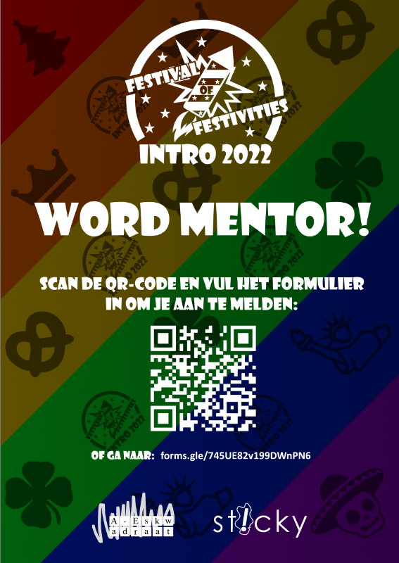 Het thema voor de introductie is bekend! Festival of festivities, een groots festival van feestdagen over de hele wereld. Daarmee zijn tot deze datum ook de inschrijvingen voor mentor worden geopend! Scan daarvoor de QR-code op de poster of ga naar de deze link