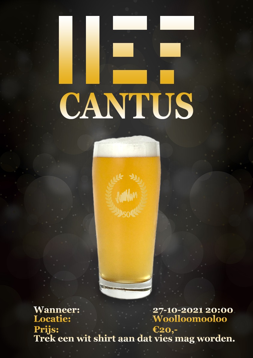 Het is eindelijk zo ver! Tijd voor de jaarlijkse cantus van A–Eskwadraat! De laatste cantus is al weer wat langer geleden, maar dat betekent dat deze alleen maar beter kan worden. Voor slechts 20 euro kun je, ruim voorzien van bier en onder de leiding van de heer Hulst en heer Geel, al zingend en drinkend een fantastische avond tegemoet gaan, en van deze lustrumeditie een geweldige herinnering maken.