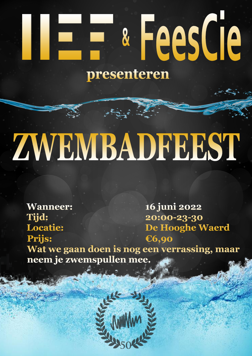 Hou je van feesten? Hou je van klooien in het zwembad? Ja? Kom dan naar het zwembadfeest waar dit fantastisch te combineren is. De FeestCie komt het plaatje compleet maken met extra vermaak. Op 16 juni zijn jullie welkom vanaf 20u bij zwembad De Hooghe Waerd te IJsselstein. Tot dan! Oh en neem je zwembroek mee!