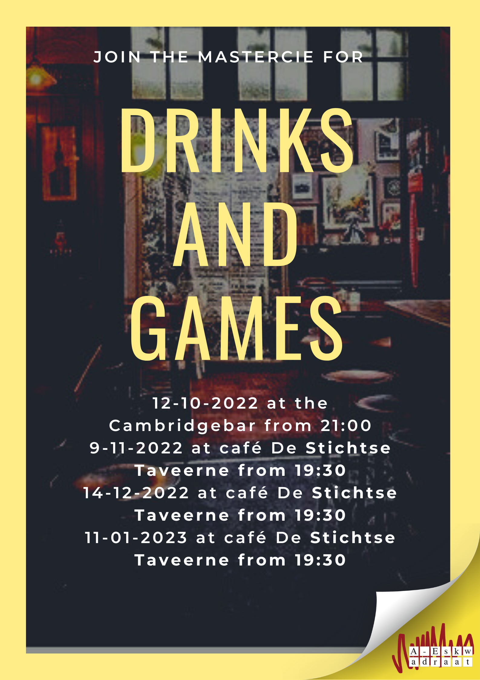 Join the MasterCie for drinks and games! From 21:00 at the Cambridgebar.