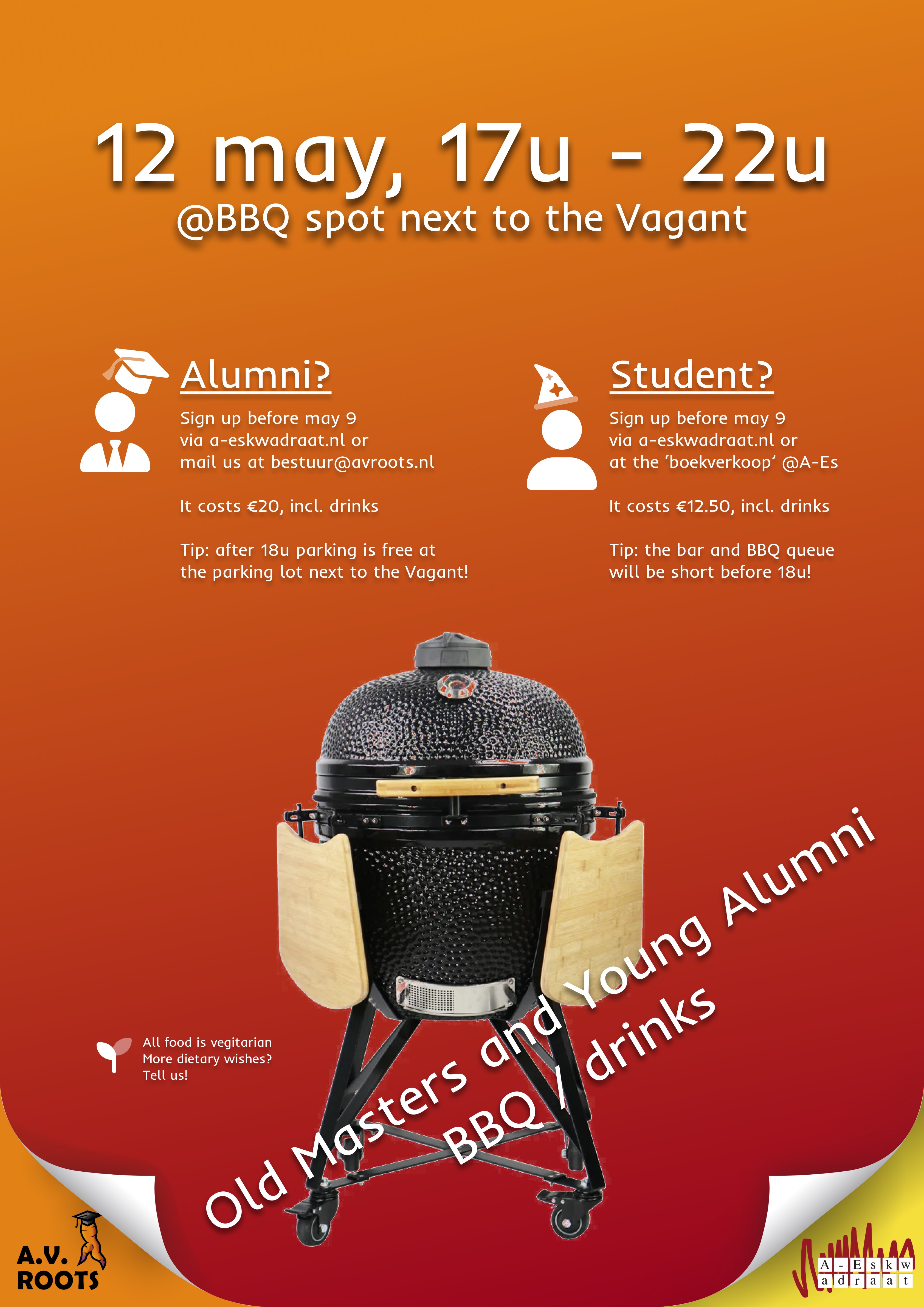 Kom op 12 mei met ons het voorjaar vieren met een BBQ en borrel op de uithof! Kom voor het biertje, de maiskolf, het zonnetje, je vrienden of misschien wel een interesant gesprek. Zowel 'Oude' Masters als 'Young' Alumni zijn uitgenodigd. Praat met anderen over wat je na je studie / huidige crappy baan gaat doen, of kom gewoon om je studentenleven te (her-)beleven!
