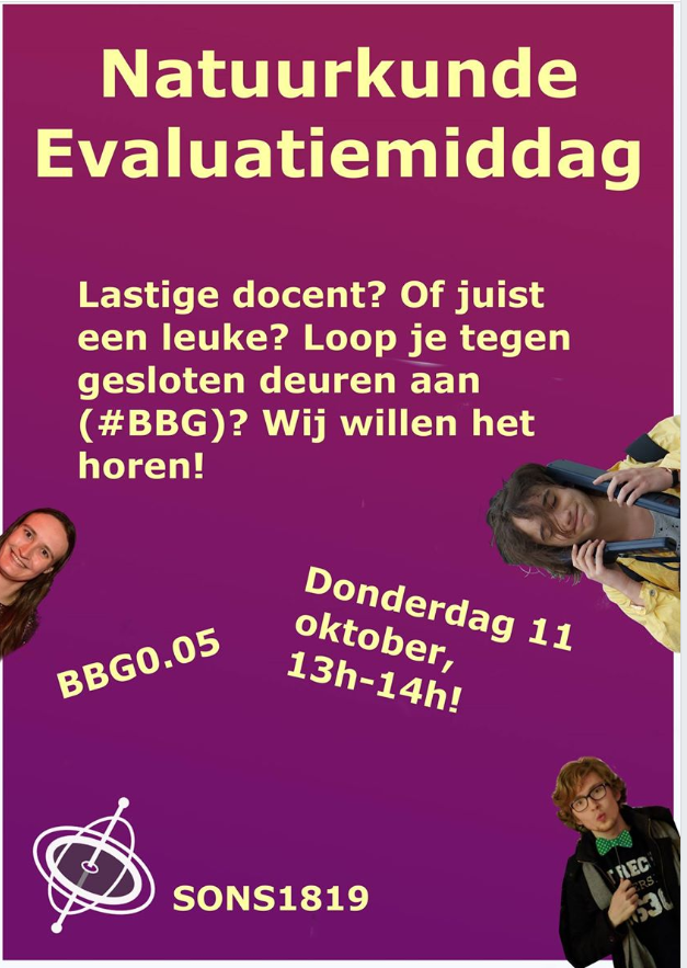 HOI het SONS nodigt jullie uit om je mening te geven! Vond je vakken leuk? Vond je ze kut? Vond je je studentassistenten vet lit? Vind je de champignonsoep in het Minnaert te champignonnig? Wij willen het graag horen!
