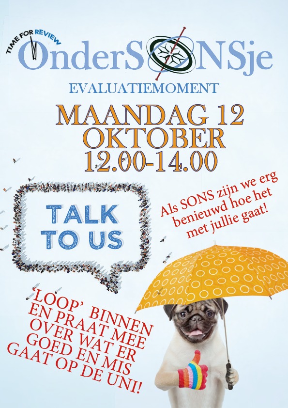 Het SONS is heel benieuwd hoe het onderwijs jullie afgaat, zeker nu alles anders is door covid-19! Dus kom even langs maandag de 12de en praat mee!