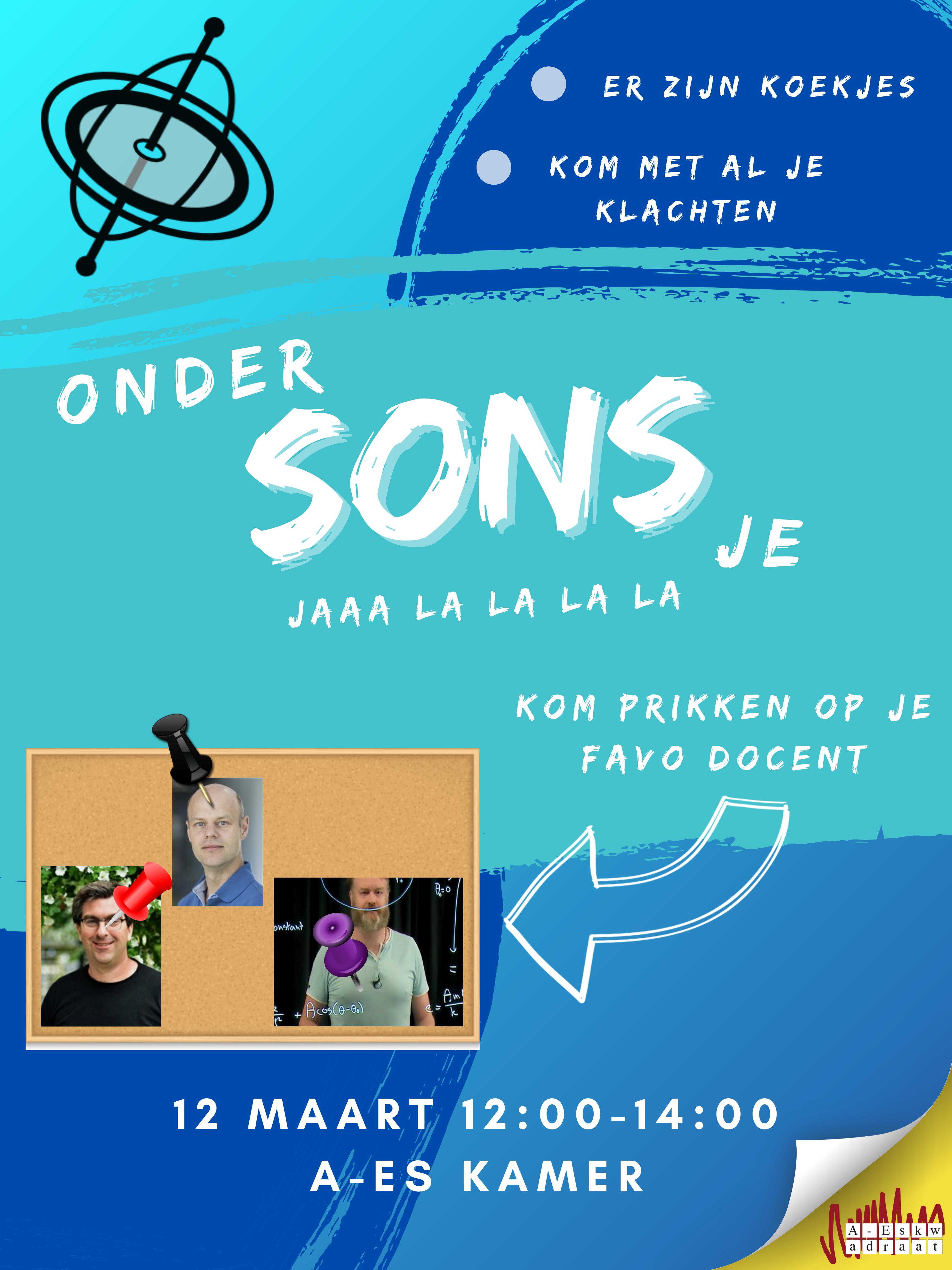 Come by with your complaints, remarks, or suggestions - or if you just want to talk about the teachers, courses, or other aspects of the Physics bachelor's and master's programs. The SONS is ready to take action with all your feedback. See you then!