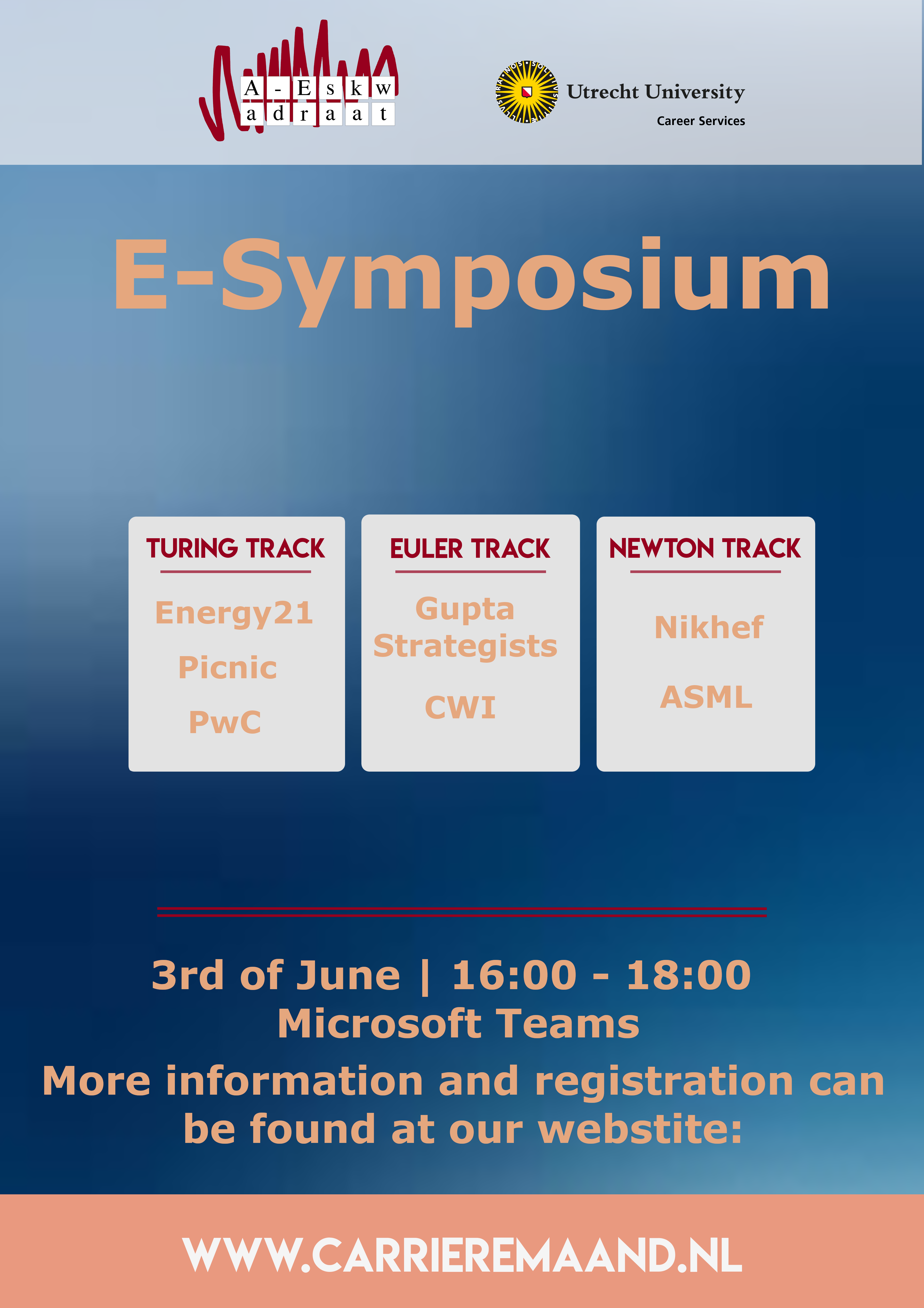 Het Carriere symposium vindt gewoon plaats! Wel in een iets andere vorm dan dat je gewend bent, maar we hebben weer leuke sprekers voor je geregeld. We zullen hier binnenkort de link naar de sessie plaatsen. Dus hou de site in de gaten en ook eventuele updates kan je hier vinden. Ik zie je daar! Inschrijven kan op www.carrieremaand.nl
