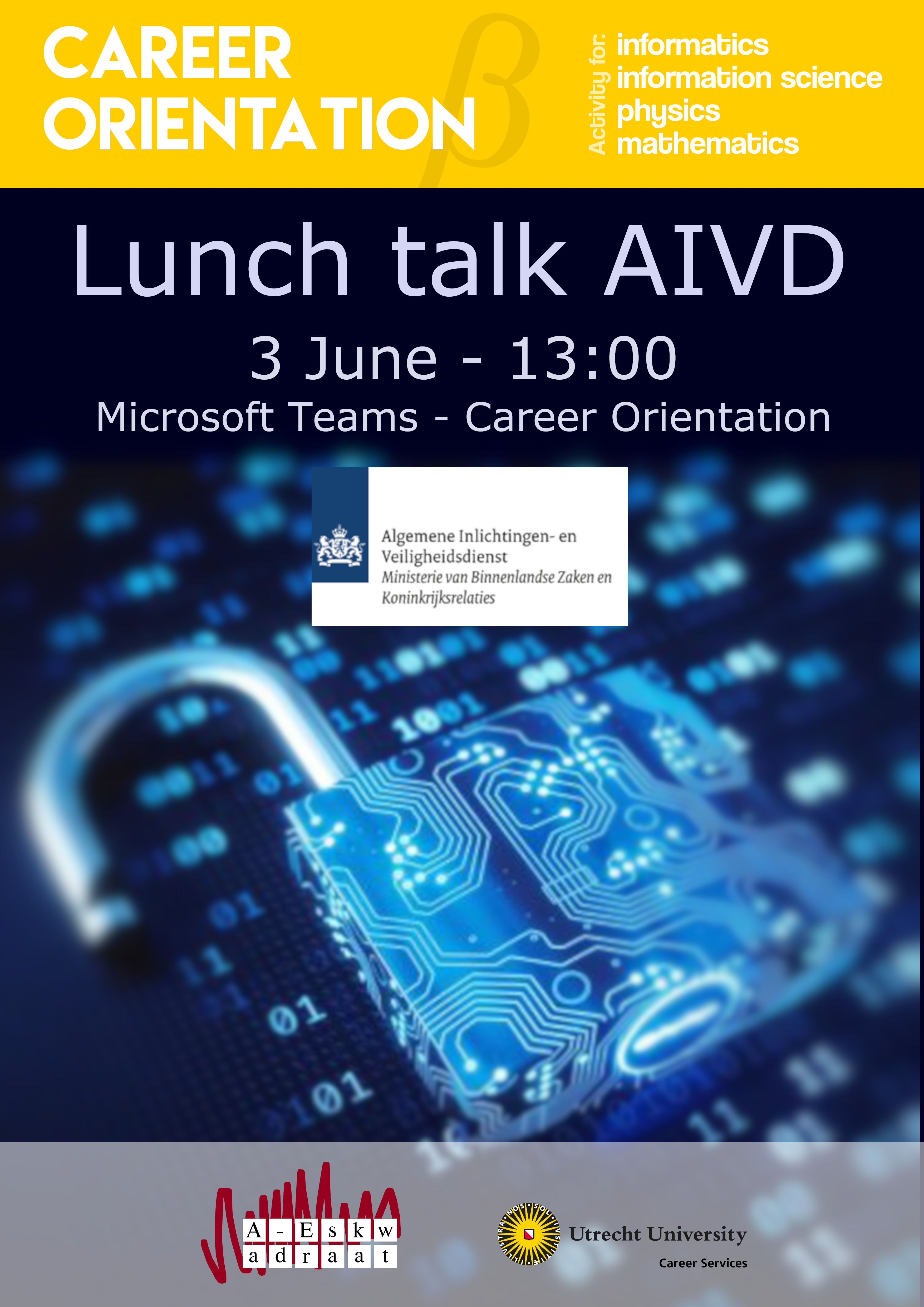 To make up for not participating in the career symposium the dutch general intelligence and security service (AIVD) gives a lunch talk. Unfortunately the talk will be in Dutch.