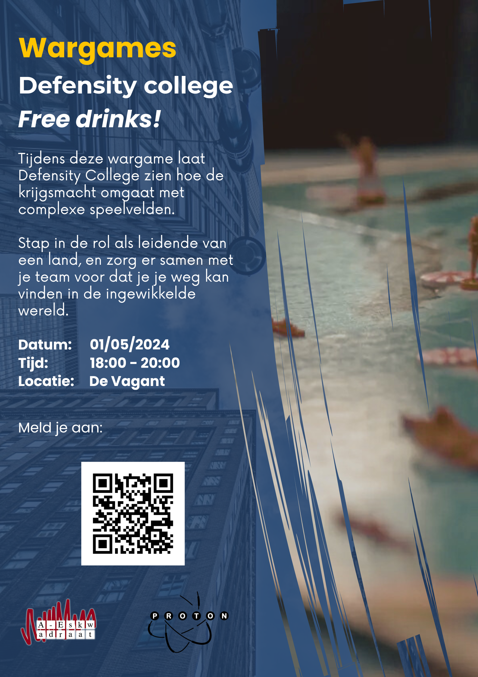 Tijdens deze wargame laat Defensity College zien hoe de krijgsmacht omgaat met complexe speelvelden. Stap in de rol als leidende van een land, en zorg er samen met je team (je kan je individueel opgeven!) voor dat je je weg kan vinden in de ingewikkelde wereld.