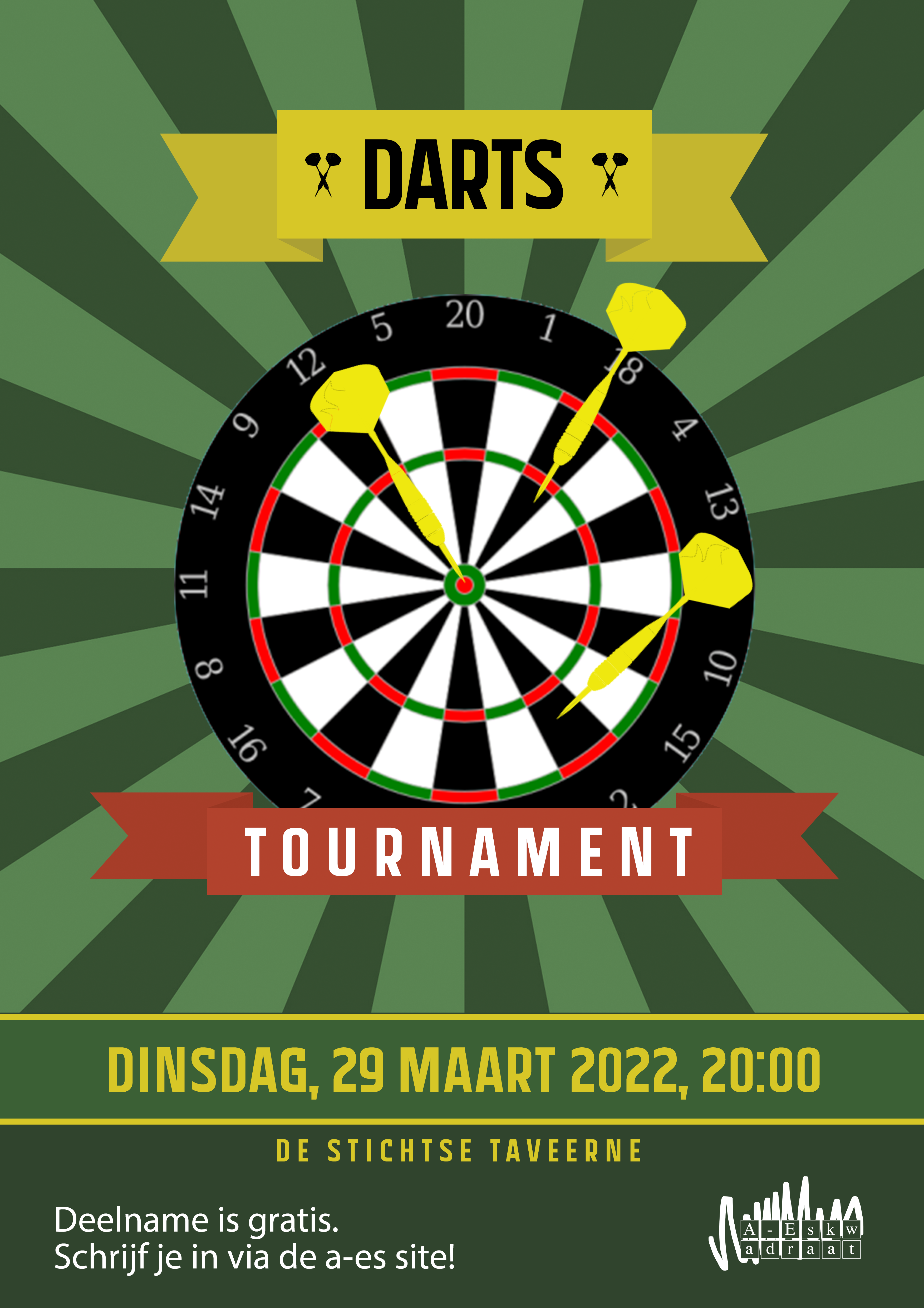 Dinsdag 29 maart vanaf 20:00 gaan we wat potjes darten onder het genot van wat drankjes. Dit zal gebeuren in de Stichtse Taaverne.