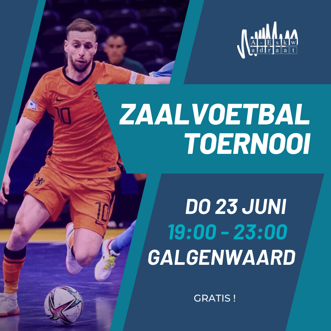 Op 23 juni spelen we een zaalvoetbaltoernooi met teams van A-Eskwadraat. Het toernooi zal tussen 19:00 en 23:00 gespeeld worden, waarna we kunnen verhuizen naar de kantine van Galgenwaard voor een welverdiend drankje. De teams moeten bestaan uit 5 tot 7 spelers.