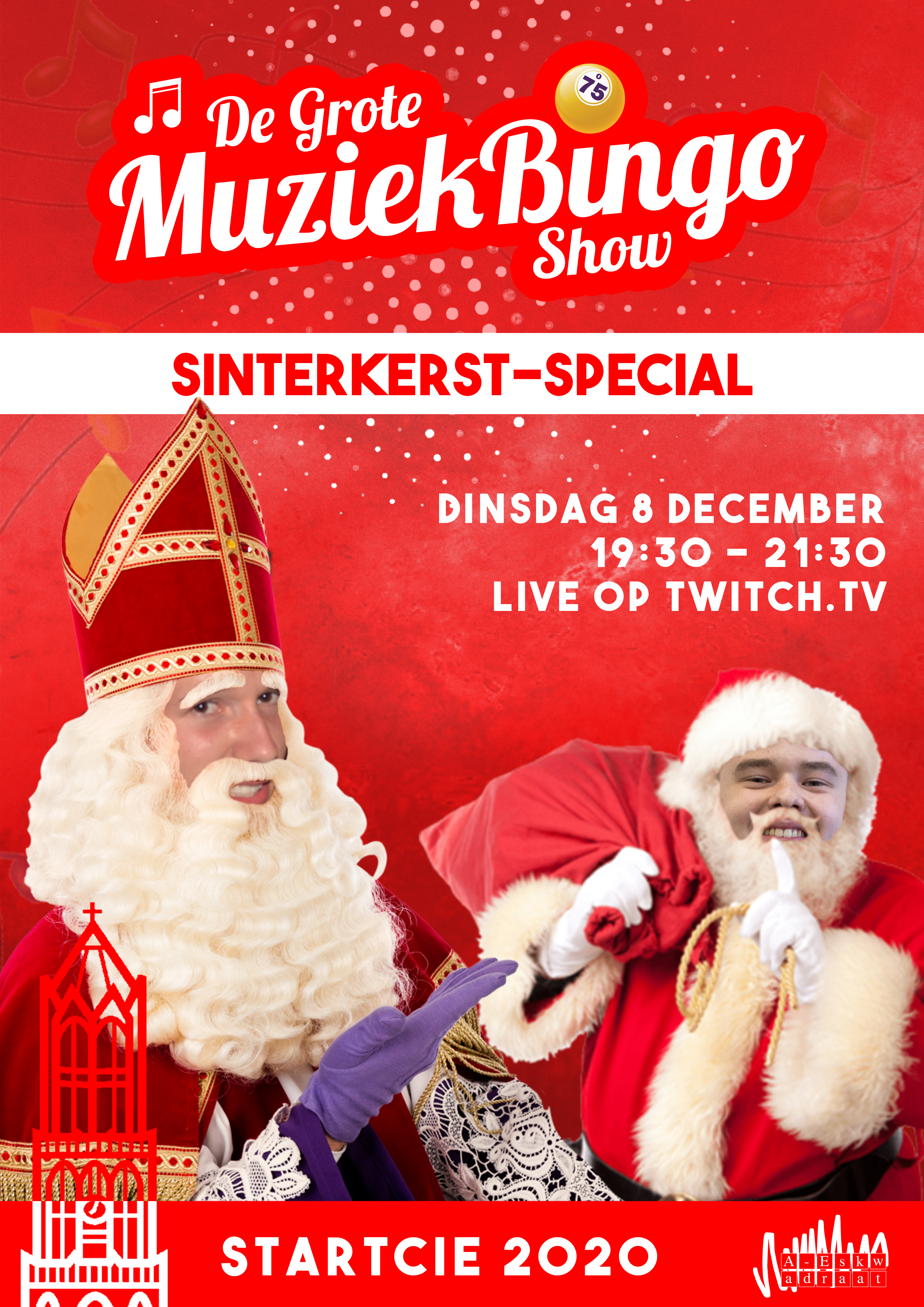 Het is weer zover! Na het razende succes van De Grote Muziekbingo Show in de introweek, zijn we eenmalig verlengd met een Sinterkerst-Special! Dit keer voor alle leden van A-Es, dus geef je vlug op en doe mee met de interactieve show.