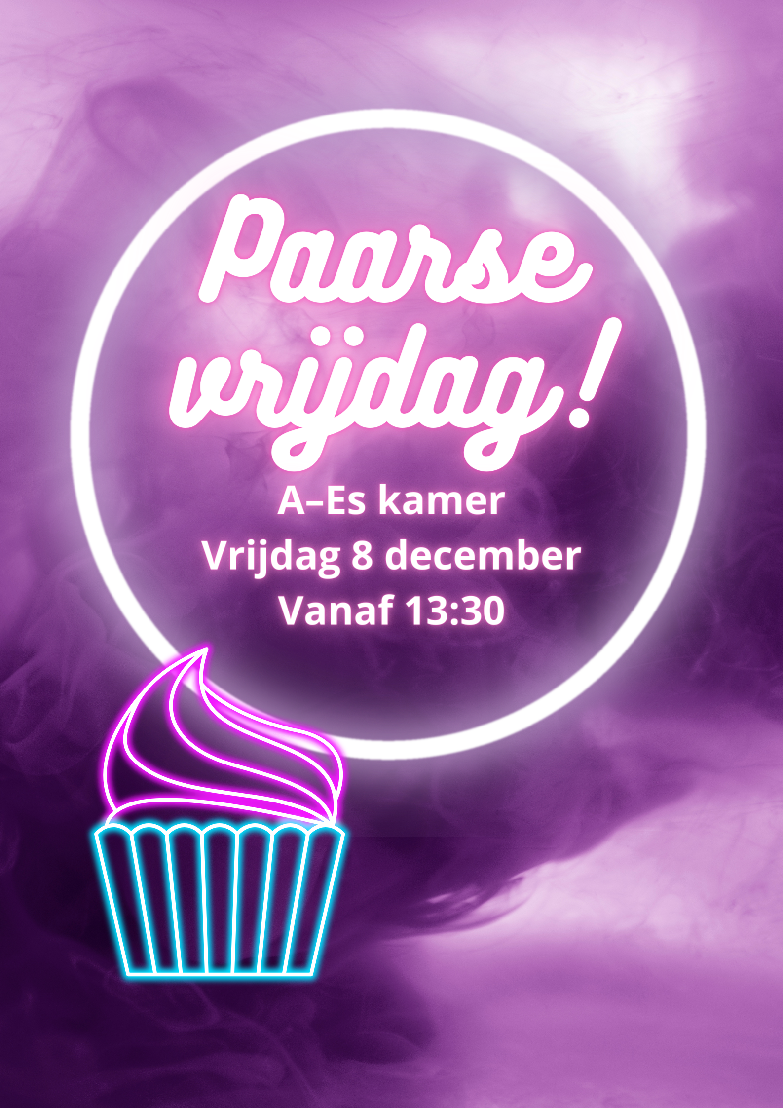 Trek op vrijdag 8 december je beste paarse outfit uit de kast (haha 'uit de kast') om op te komen voor diversiteit en de Queer community! En als je dan toch bezig bent, kom dan ook vooral lang in de kamer. We hebben namelijk 'Am I Gay?' quizzes, voor als je nog niet weet of je queer bent (of wel, gewoon voor de leuk) en 's middags zullen en cupcakes zijn!